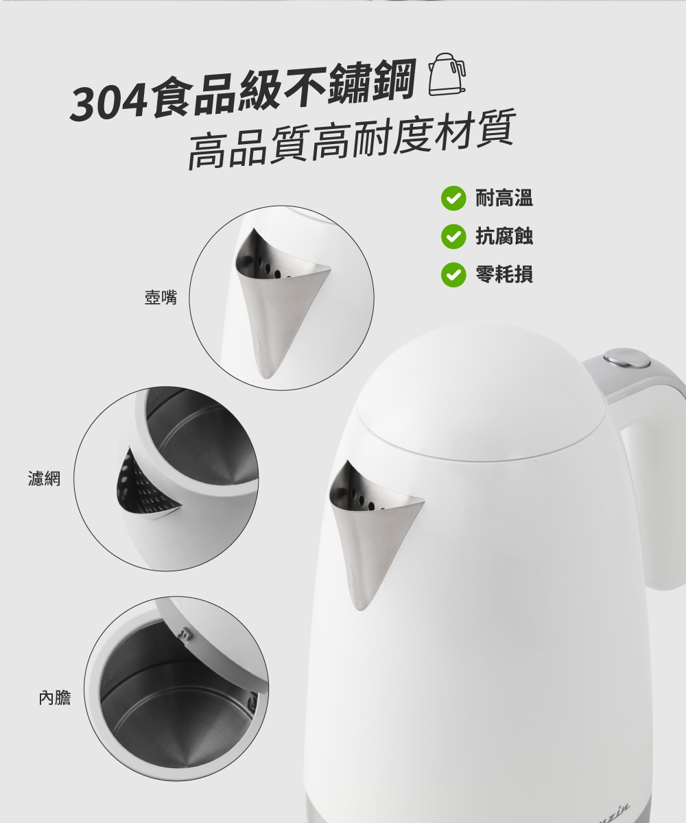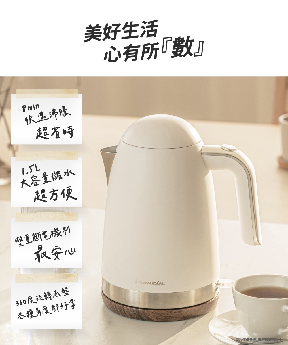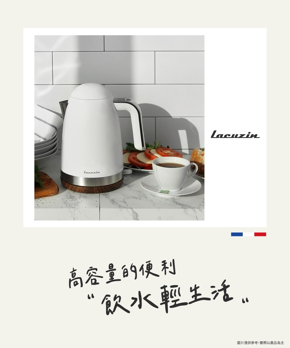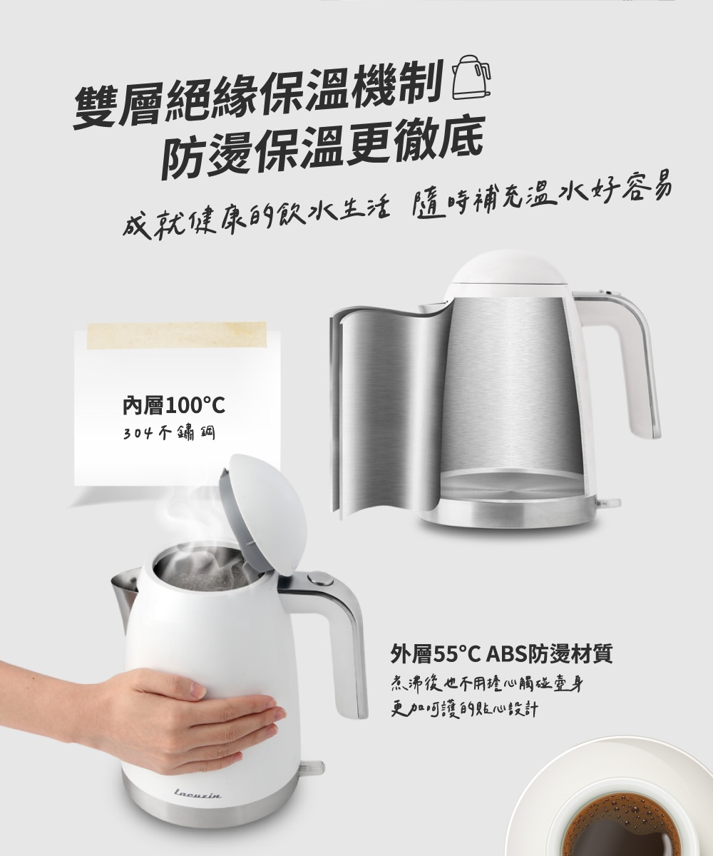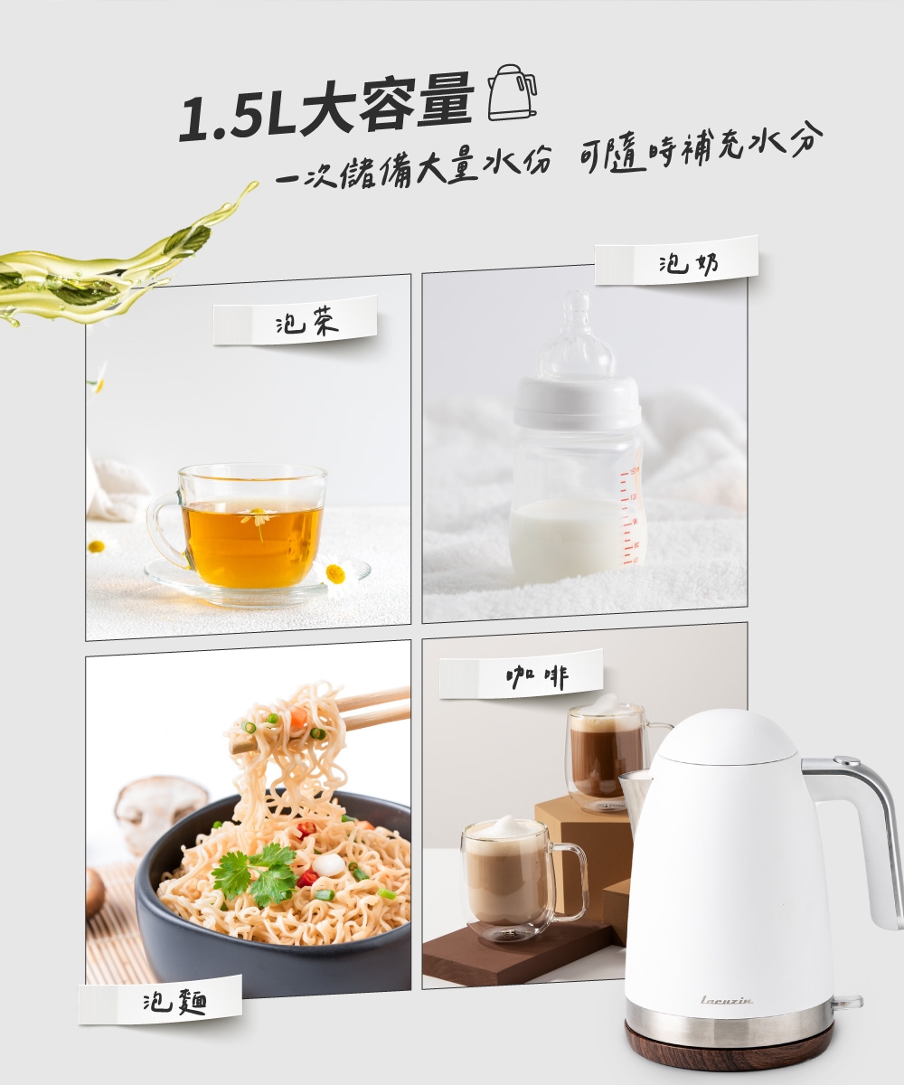 Lacuzin LCZ1802WT 1.8L 304不鏽鋼電熱水壺 900W快速沸騰 臺灣BSMI認證 家用煮水器