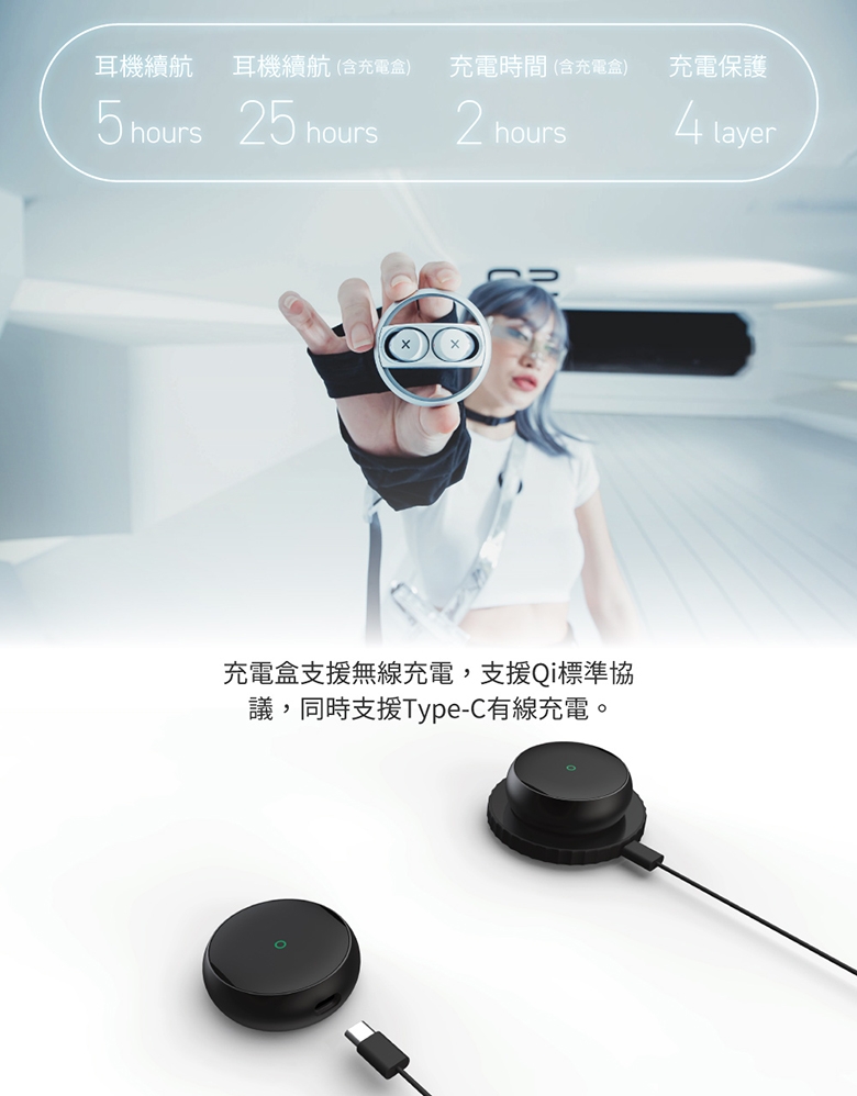 配備特殊盒造型,只需彈指旋轉即可開蓋,SX06 真入耳式耳機採用輕巧設計,單邊僅重4g,配盒總重45g,支援SBC及AAC傳輸編碼,提供高品質音效。機身具備IPX5防噴射防水功能,適合運動與日常使用。支援Android及iOS系統,提供白色、黑色、綠色、珊瑚橘多種顏色選擇,為您帶來舒適的穿戴體驗。