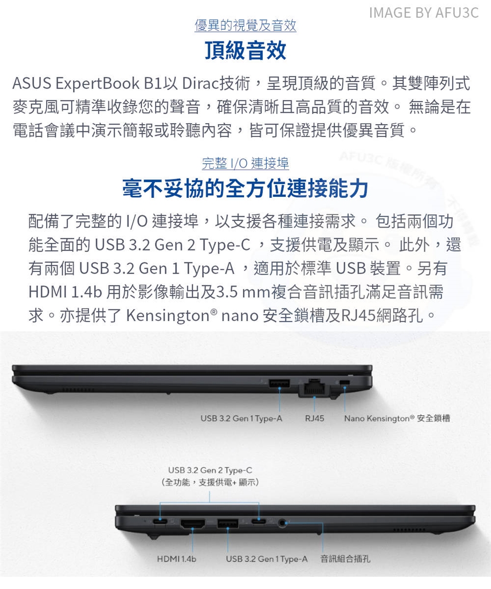 | I/O 連接埠 | USB 3.2 Gen1 (Type-A),USB 3.1 Gen2 (Type-C),HDMI,RJ45 Lan Jack |