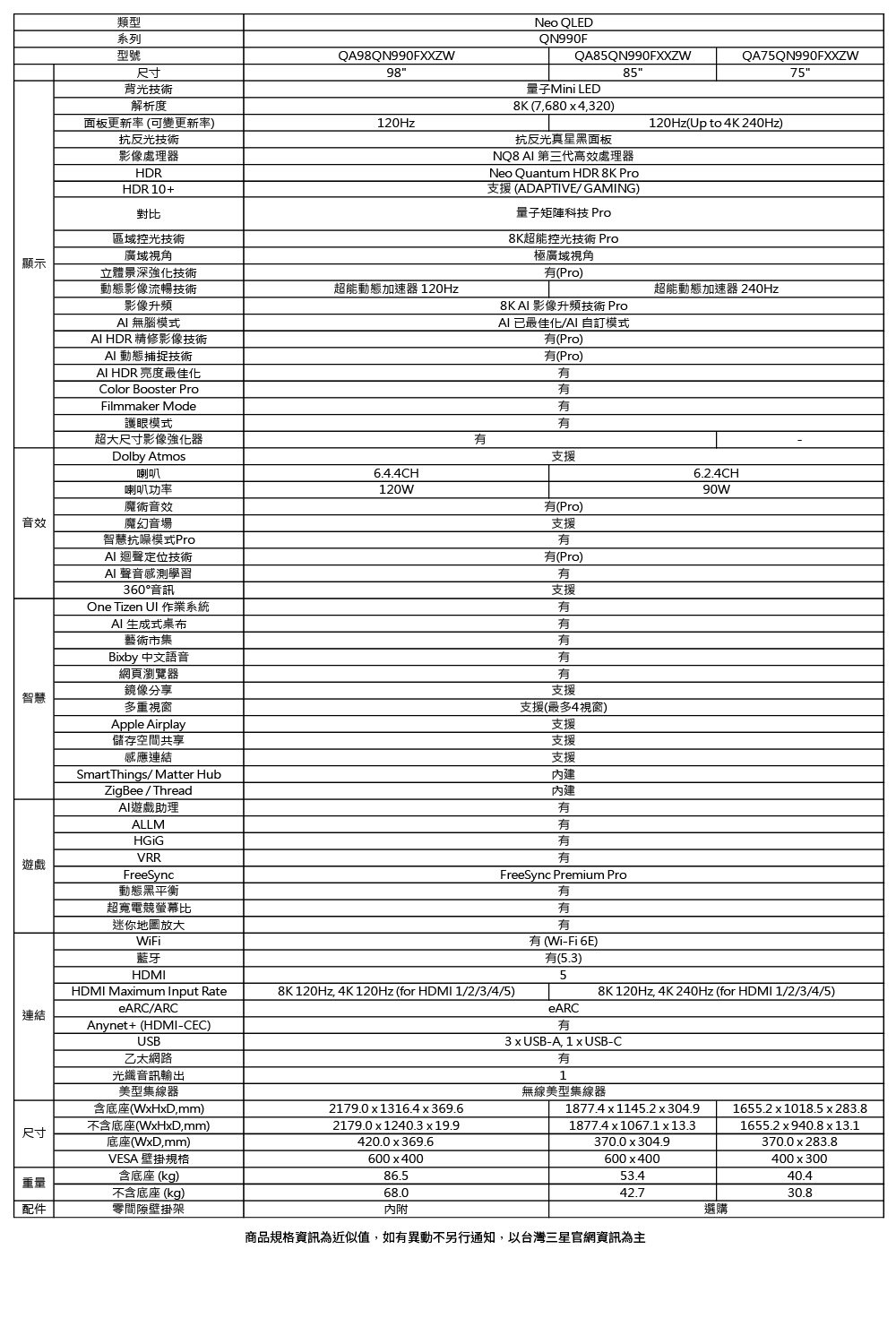 | 型號 | QA75QN990FXXZW、QA75QN990F、75QN990F |