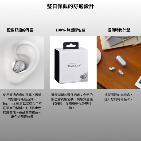 Technics EAH-AZ40M2 藍芽真無線耳塞耳機 防潑水耳塞式 黑色/銀色/玫瑰金 TYPE-C 充電 NCC認證