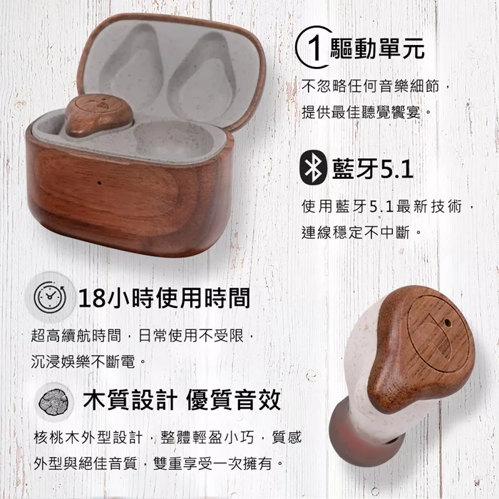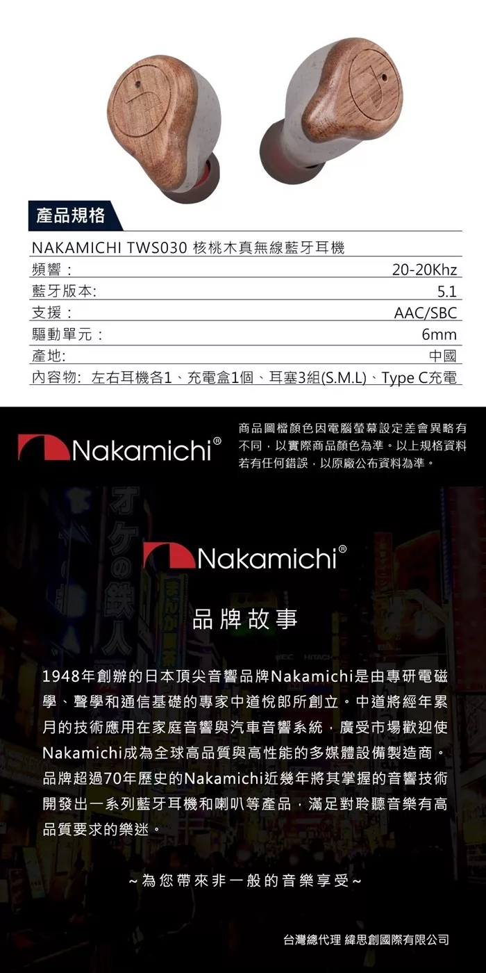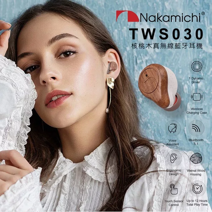 日本中道 Nakamichi TWS030 藍芽5.1 核桃木真無線耳機 高質感 公司貨一年保固 核桃木
