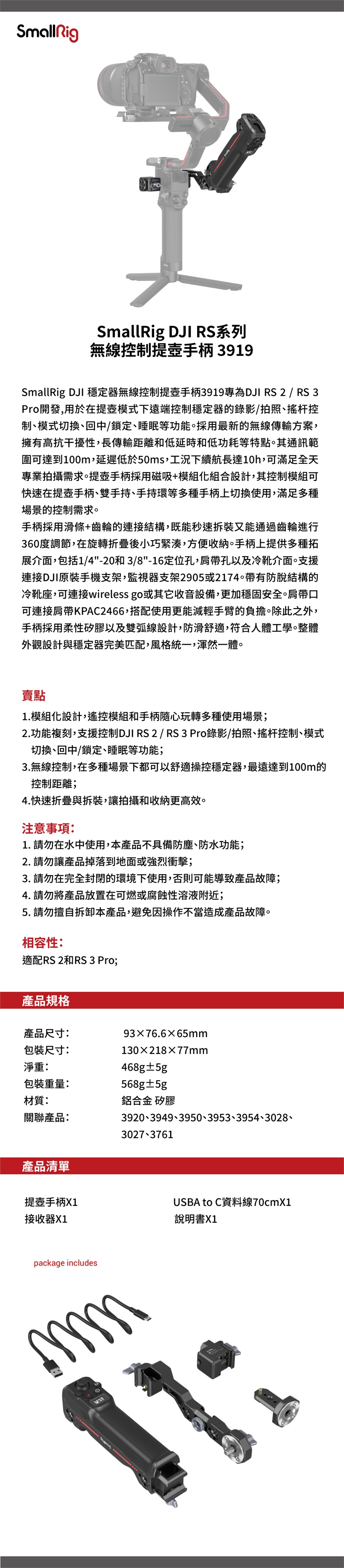 SmallRig 3919 是一款專業相機手把,專為相機/攝影機設計,提供穩固握持與舒適操作,提升拍攝穩定性。輕巧耐用,適合攝影愛好者與專業人士使用,完美搭配各種相機系統,助力創作高品質影像。