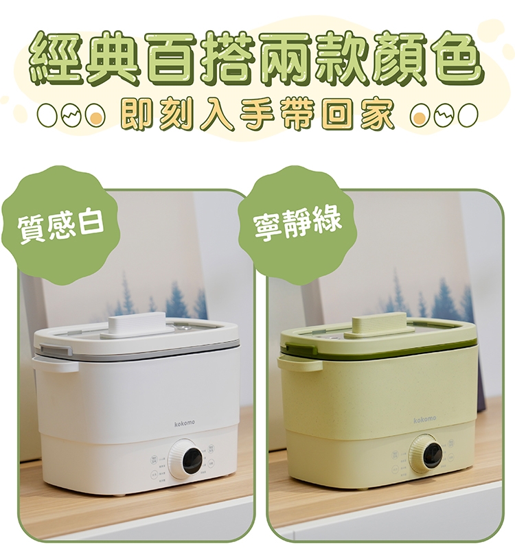 KO-GP2332 快可瀝美食煮蛋鍋 2L 電火鍋 白色 綠色