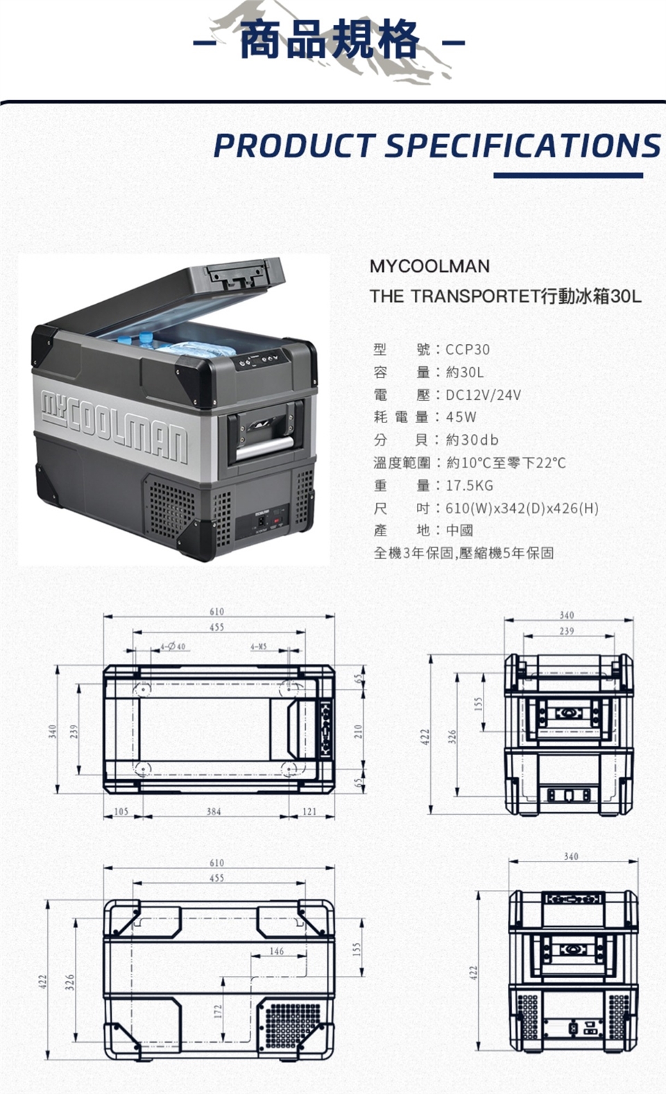 MYCOOLMAN CCP30 30公升 越野級行動冰箱 / 贈氣炸烤箱 送完為止