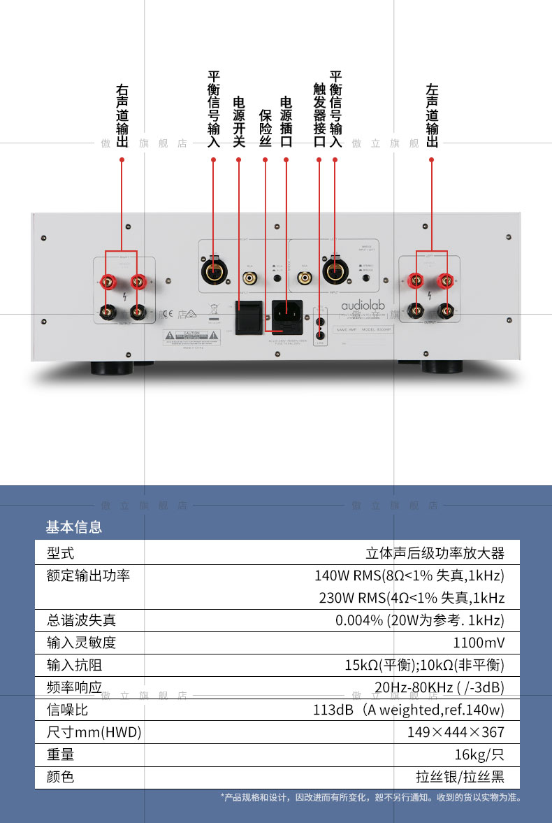 | 商品名稱 | Audiolab/英國傲立8300XP 立體聲純后級功放大功率HiFi發燒功放機 |