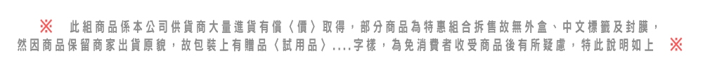 | 製造日期/有效日期 | 正確效期請以實際出貨商品標示為主。 |