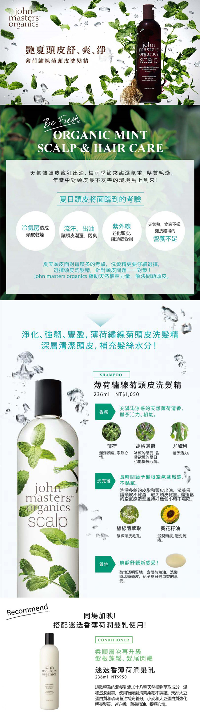 | 商品名稱 | John Masters Organics 薄荷繡線菊頭皮洗髮精 236ml |