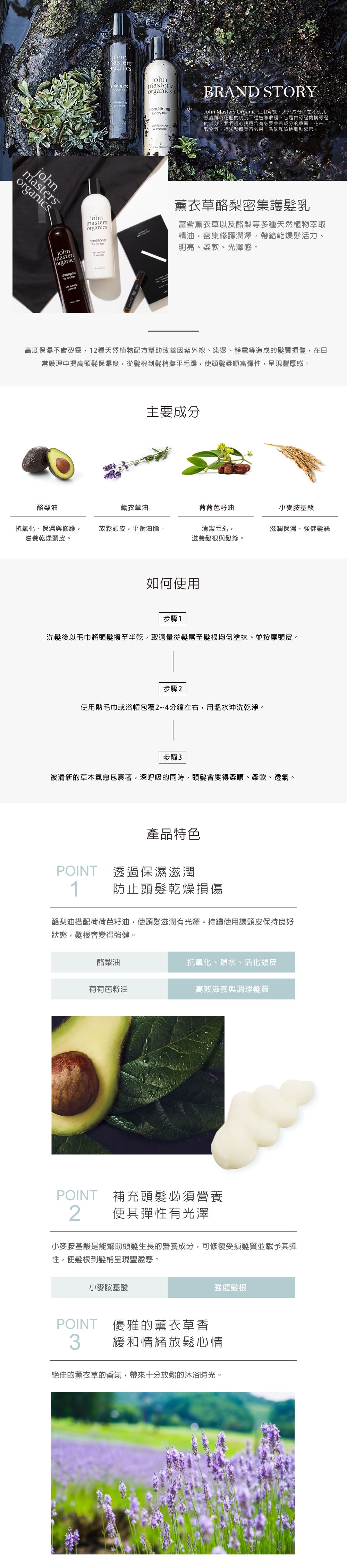 | 商品內容 | John Masters Organics 薰衣草酪梨密集護髮乳473ml |