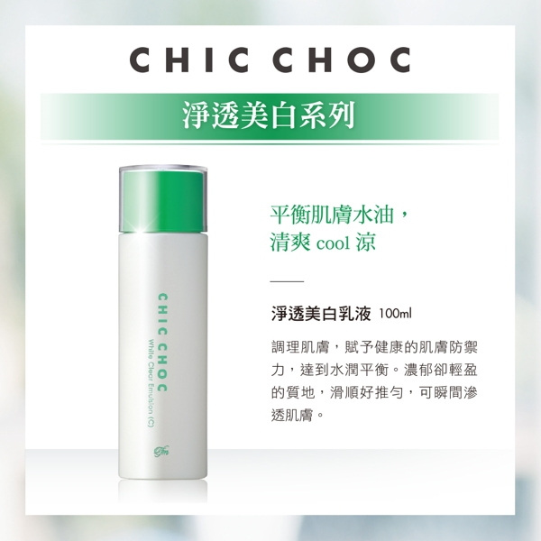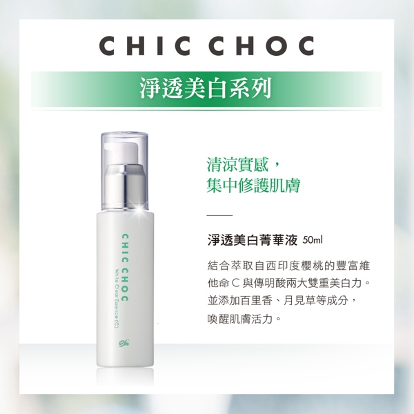 | 商品名稱 | CHIC CHOC 淨透美白水乳菁華全套組 |
