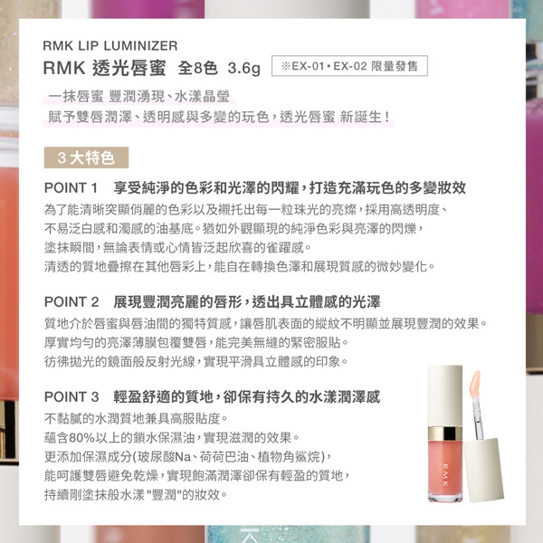 | 色號 | 01, 02, 03, 04, 05, 06, EX01, EX02 |