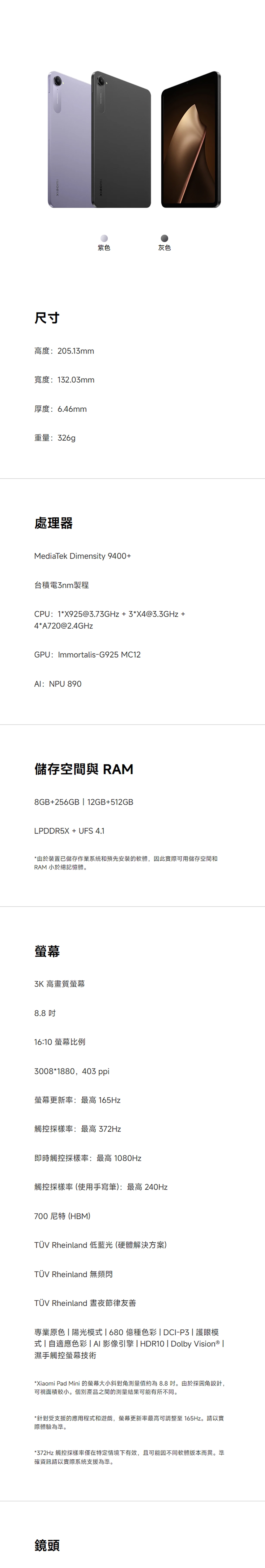 | 中央處理器型號 | MediaTek Dimensity 9400+ |