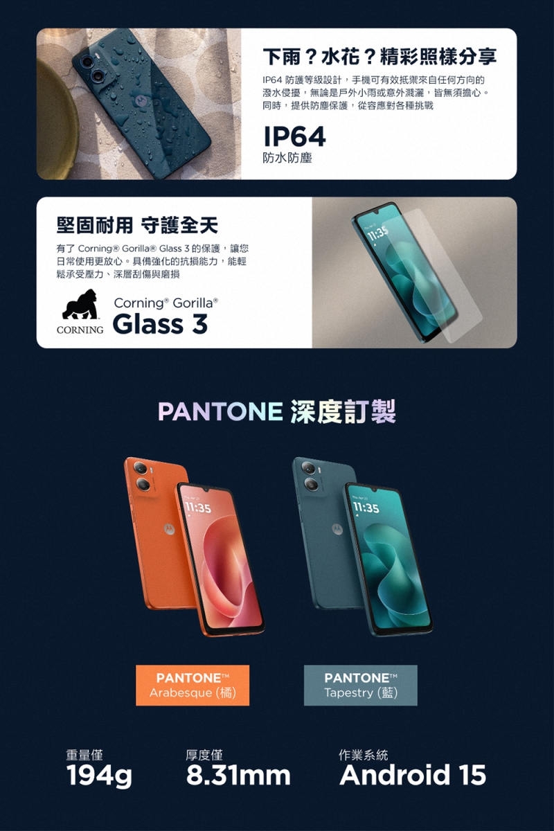 | 手機類型 | 防潑水, 雙卡雙待機, 支援4G LTE |