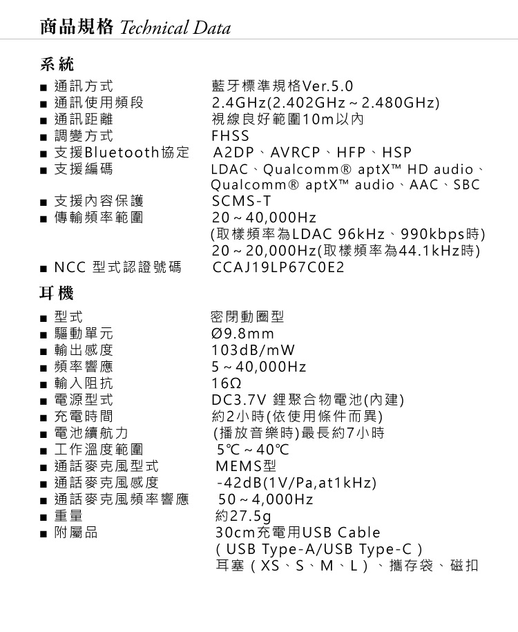 | NCC認證碼 | CCAJ19LP67C0E2 |