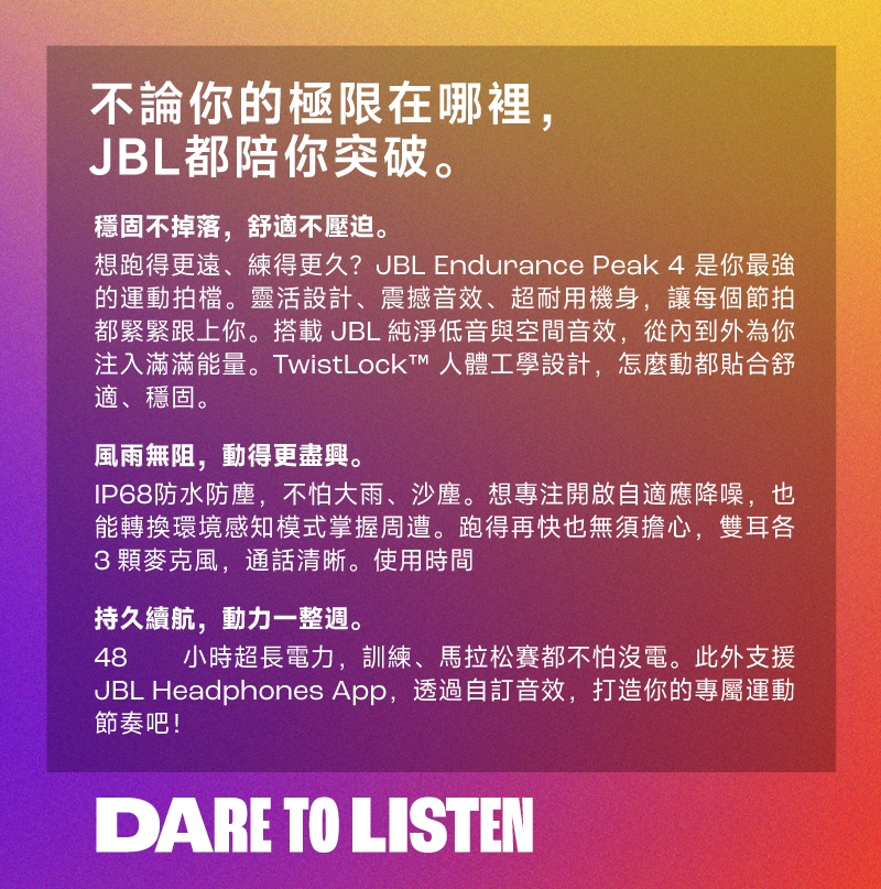 | 耳機功能 | 防潑水, 運動 |