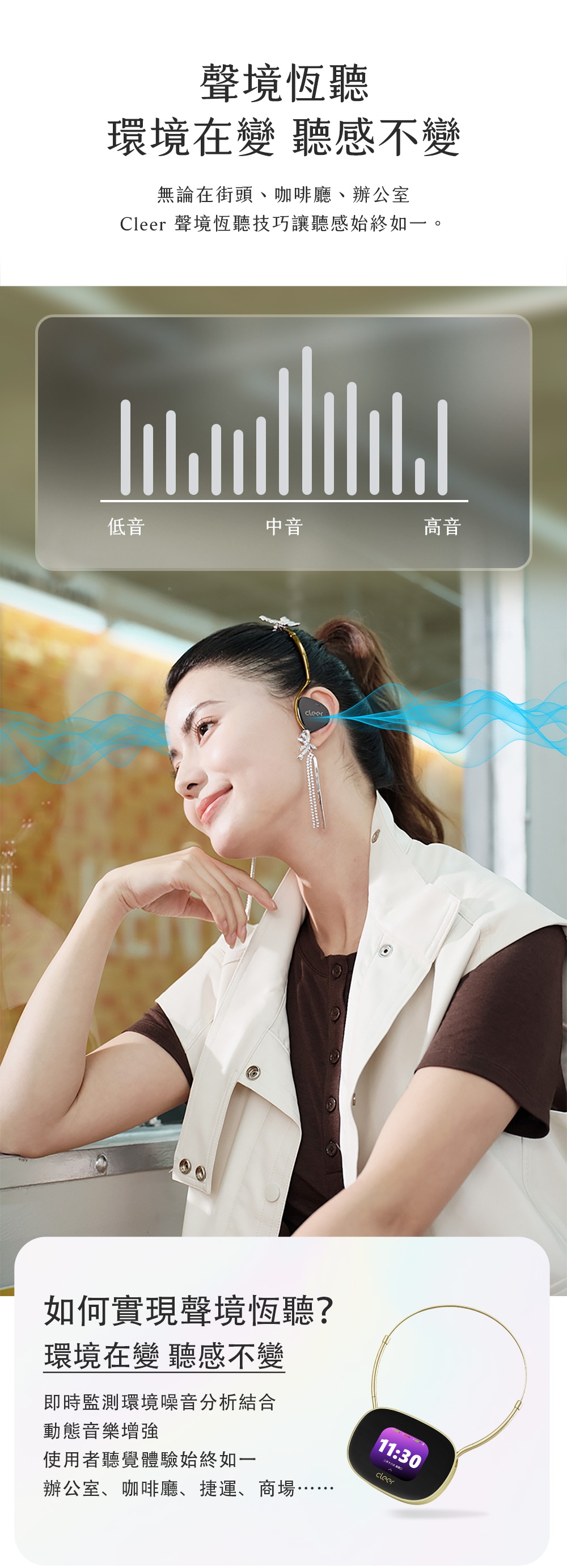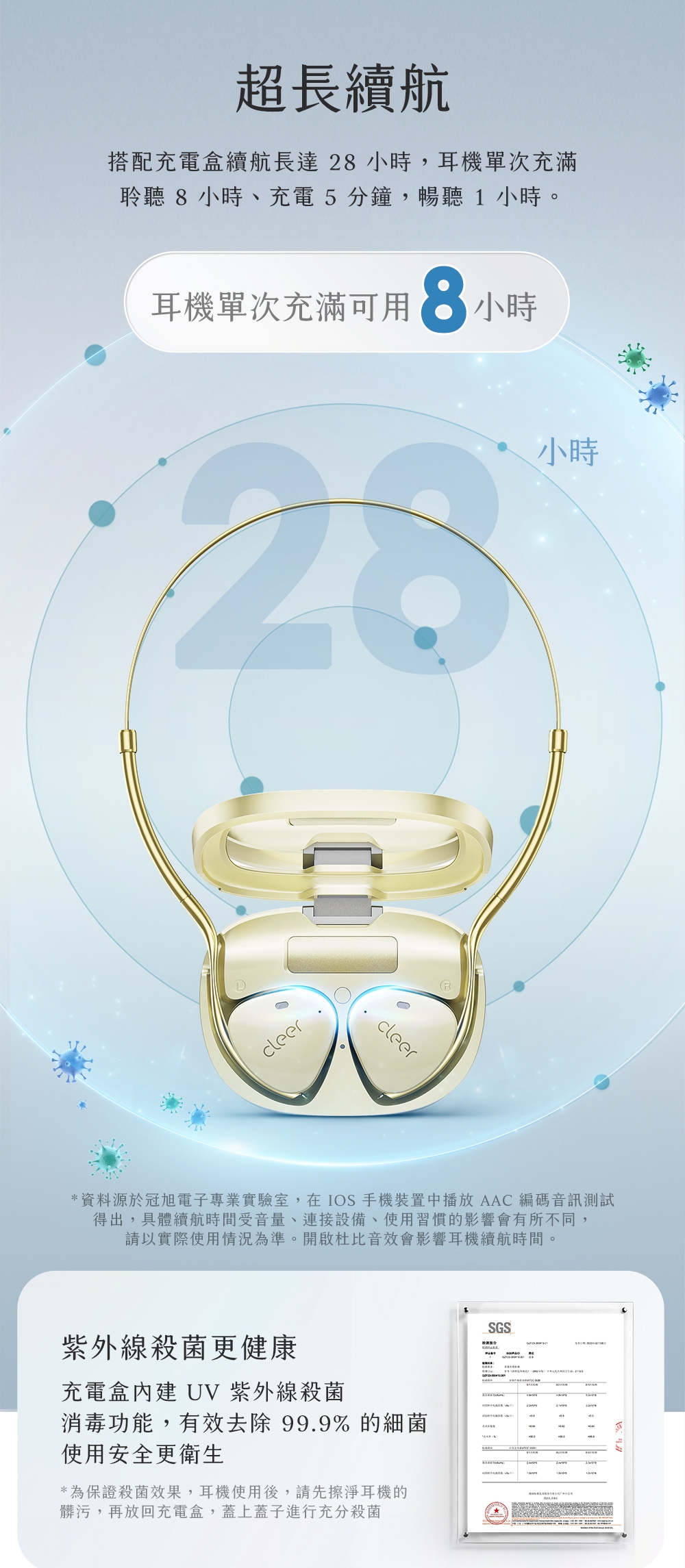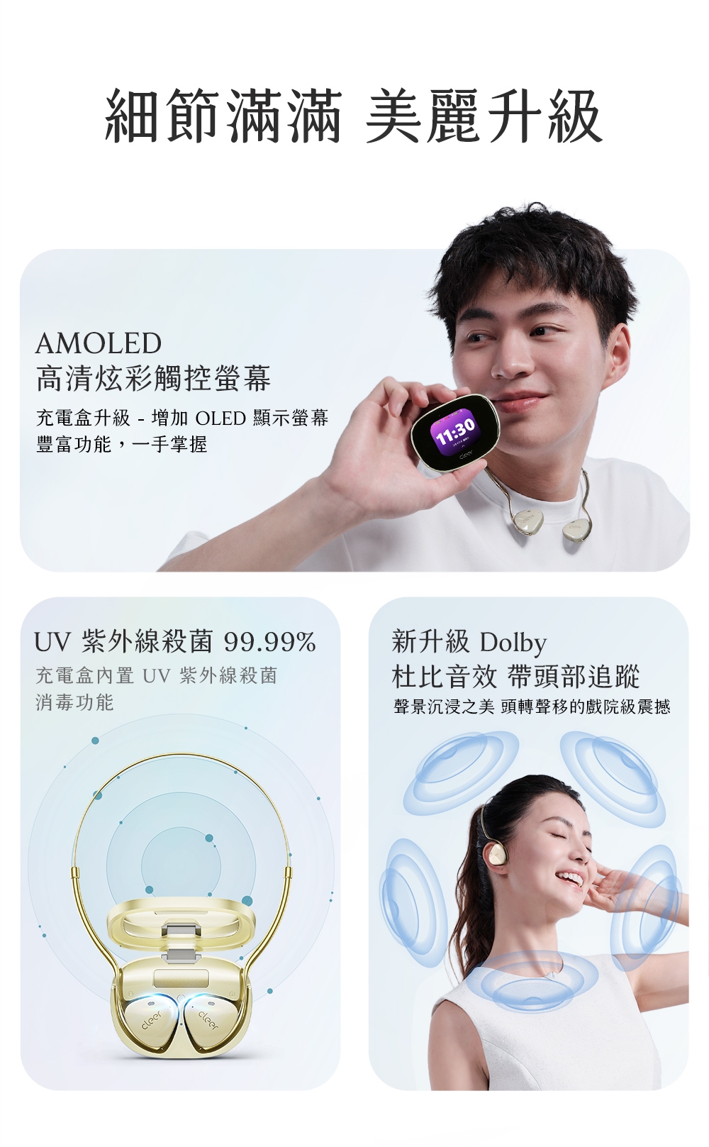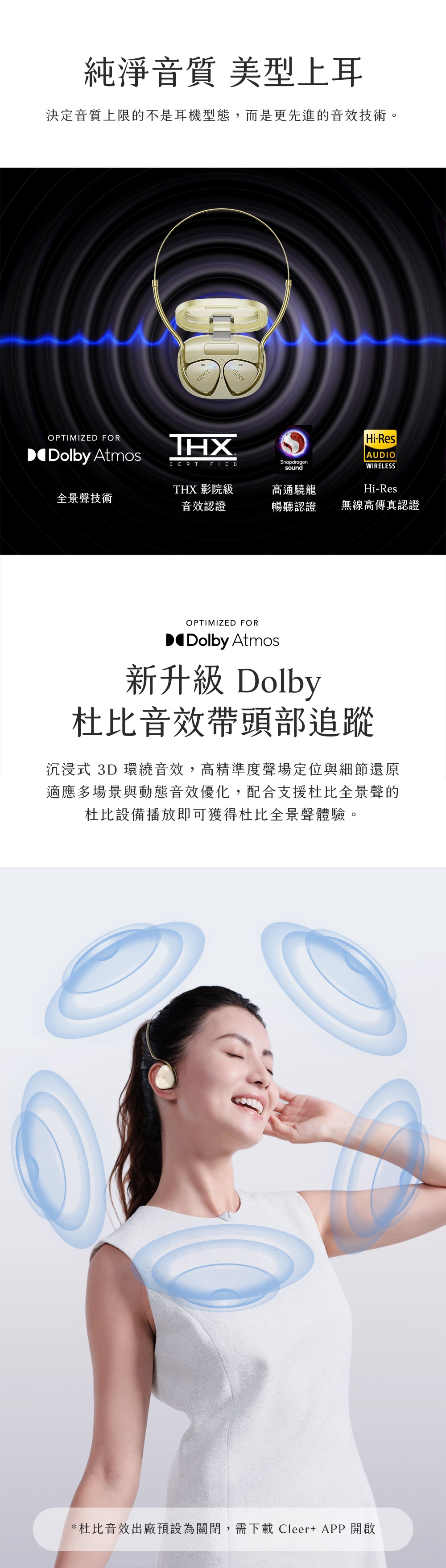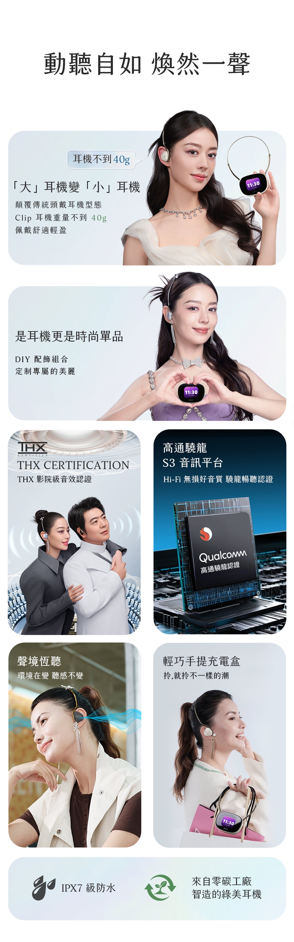 | ▌商品內容物 | Cleer Clip 開放式頭戴AI真無線藍牙耳機(時尚版Pro)充電盒USB Type-C 充電線3對C型夾說明書 |