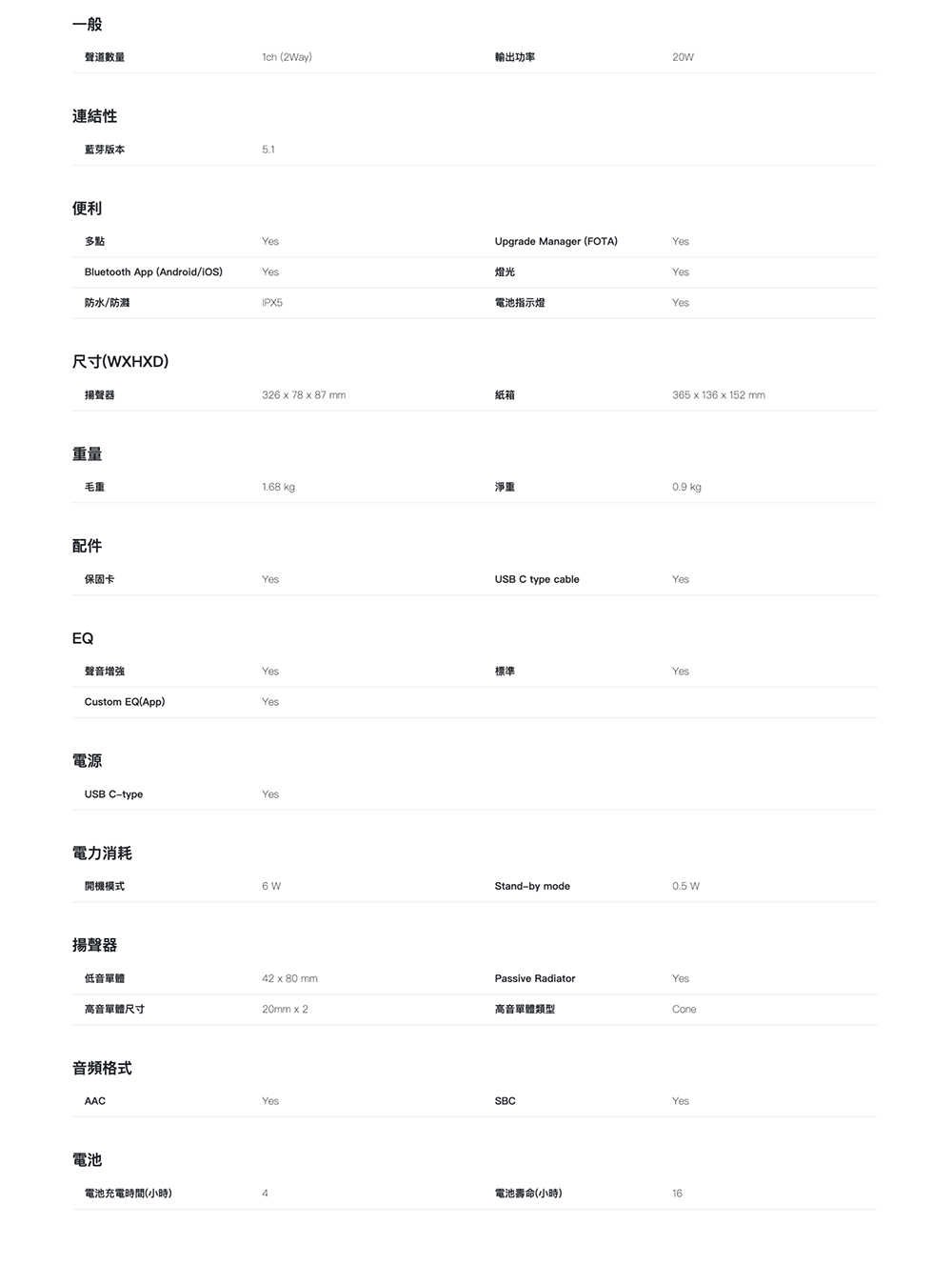 | 配件 | USB C type cable/保固卡 |