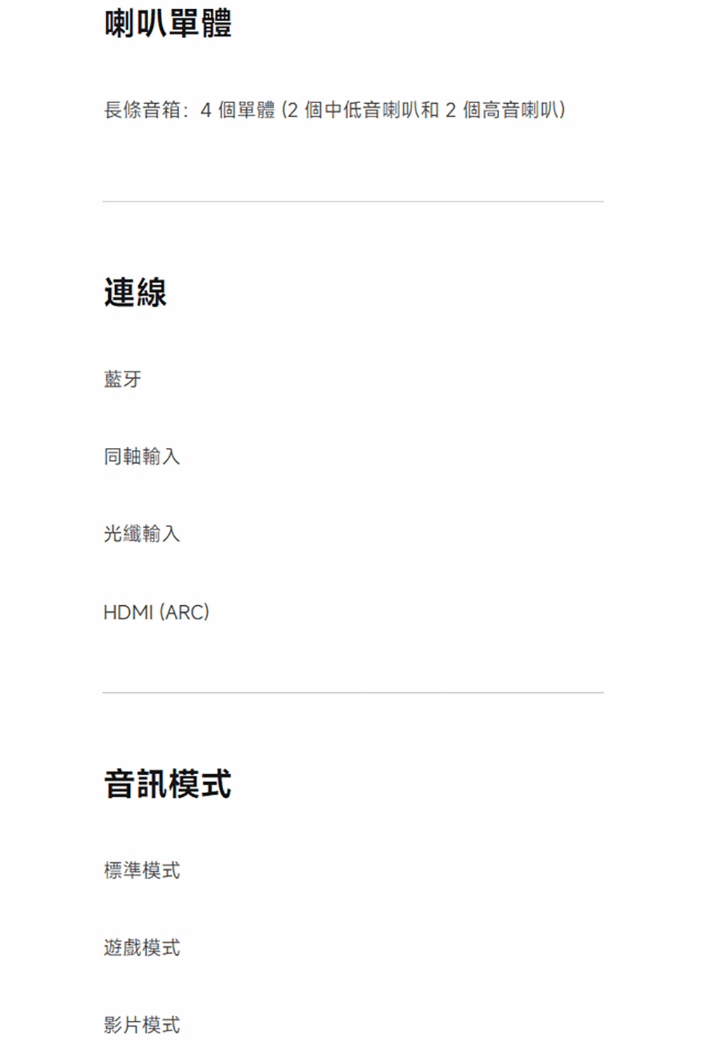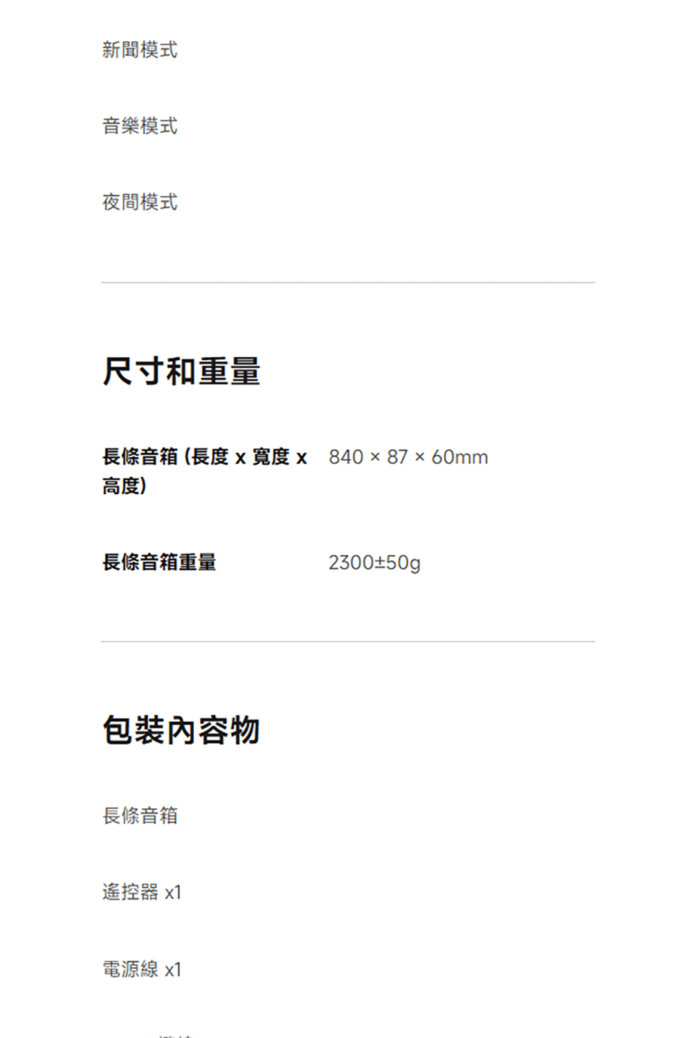 | 型號 | Soundbar Pro 2.0 ch |