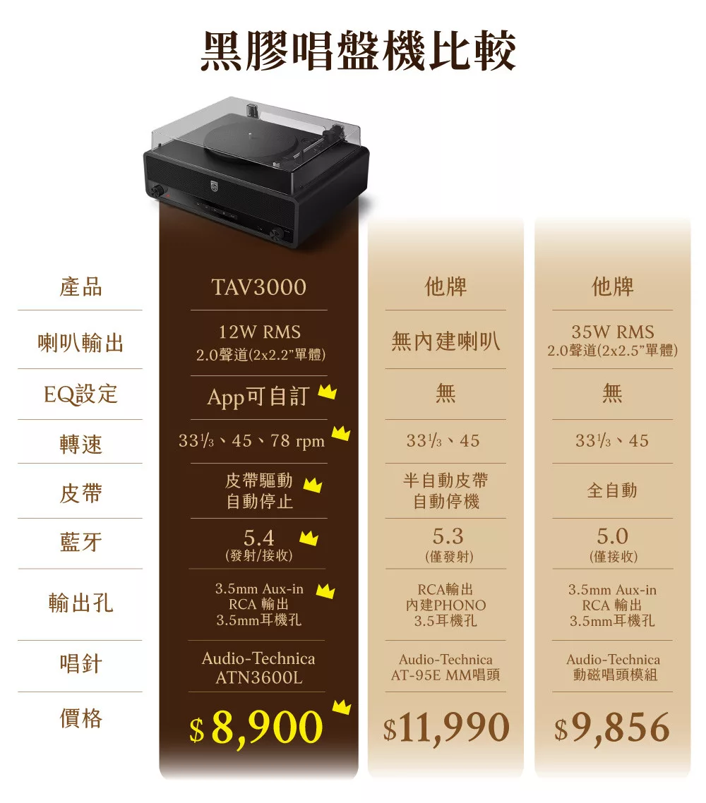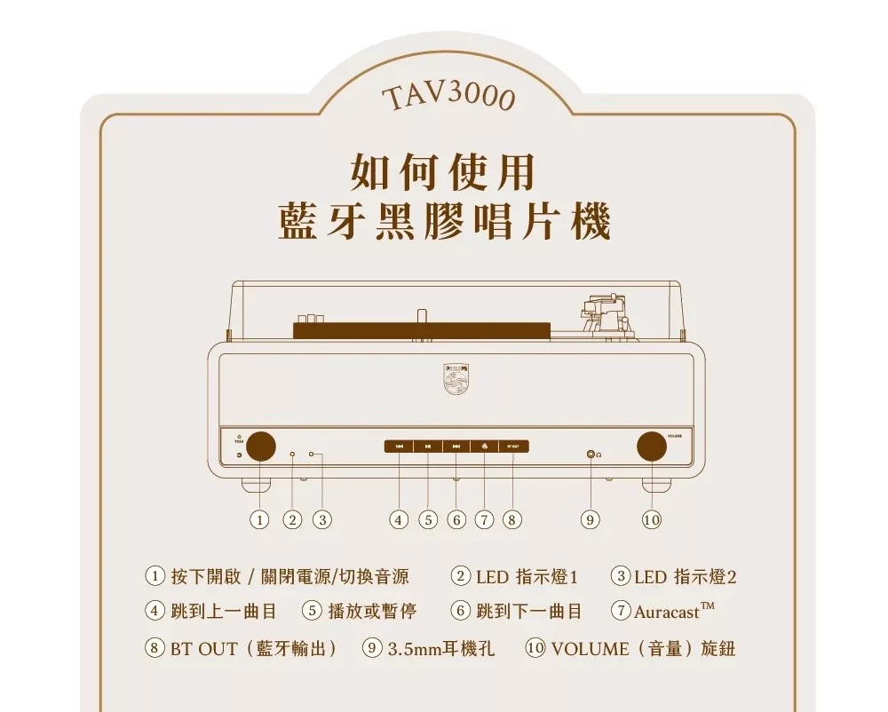 | 商品名稱 | PHILIPS 藍牙黑膠唱盤 TAV3000 |