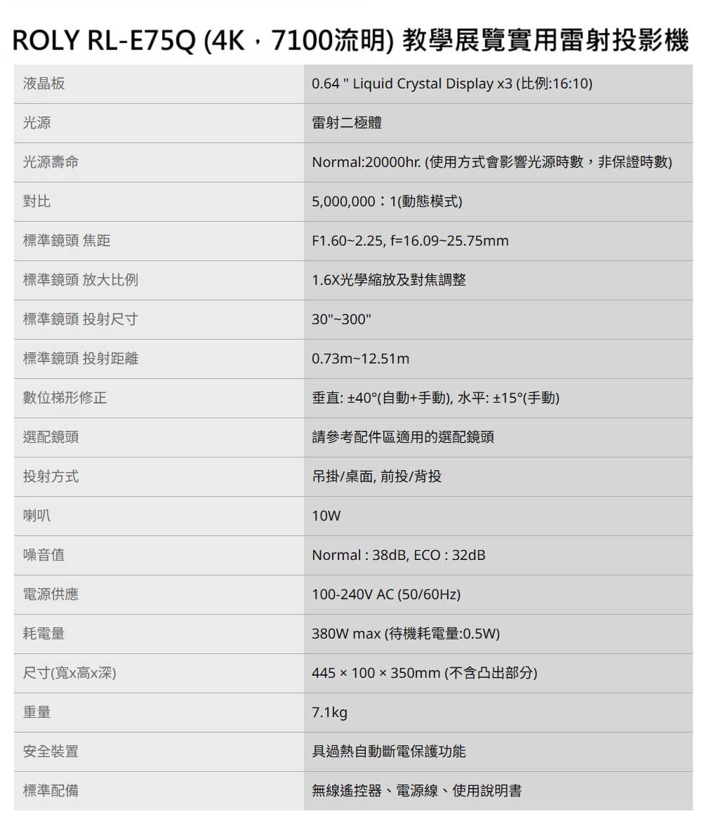 | 燈泡最大壽命(小時) | Normal: 20,000小時, ECO: 30,000小時 |