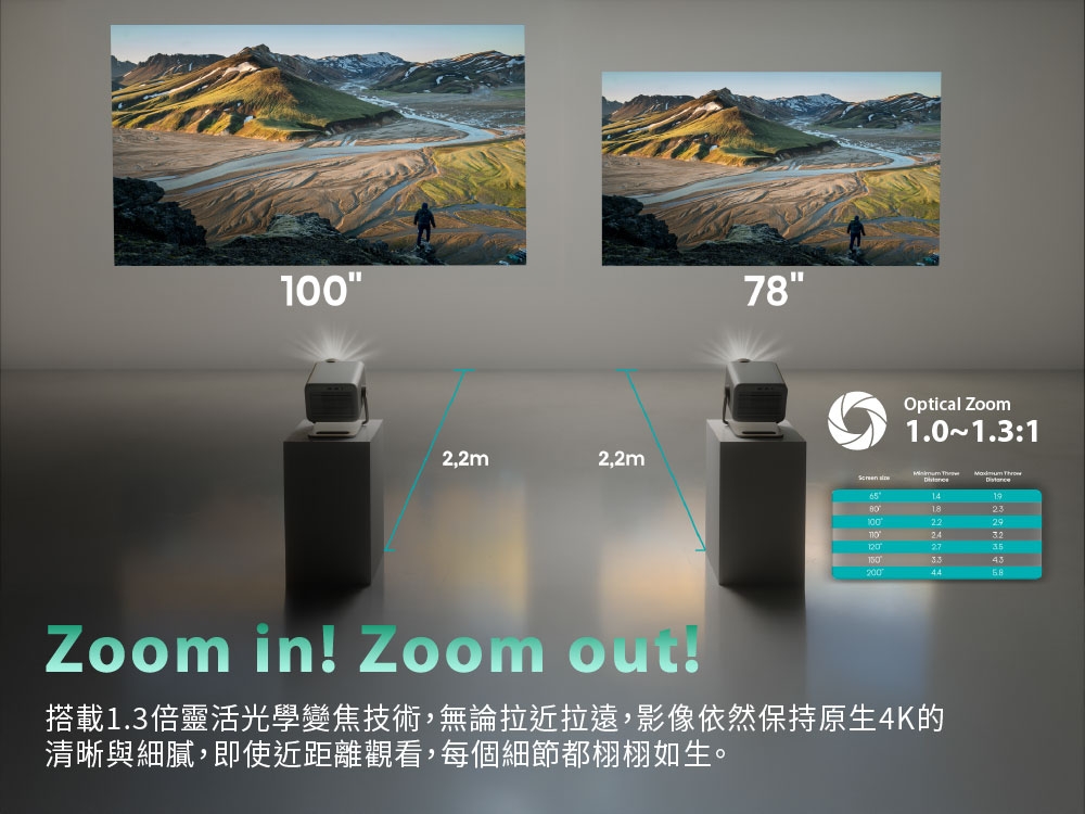 | 投影畫面尺寸 | 65~200 |