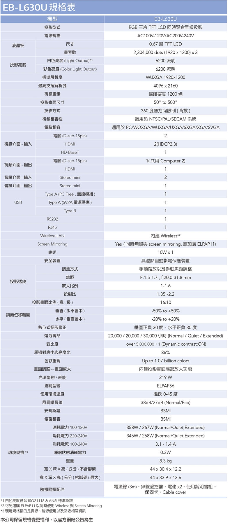 | 型號 | EB-L630U |