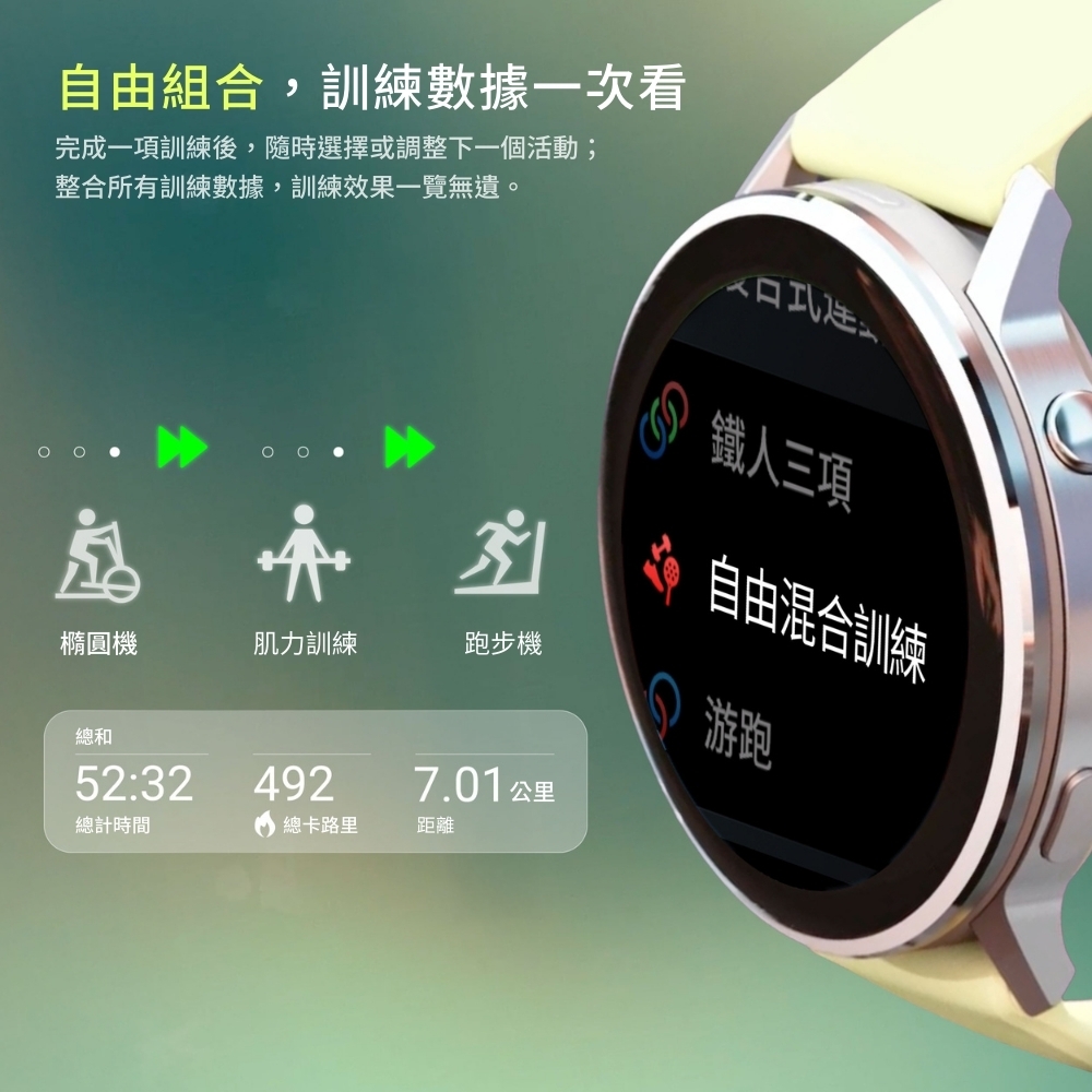 | 適用範圍 | 路跑, 自行車, 游泳, 室內運動 |