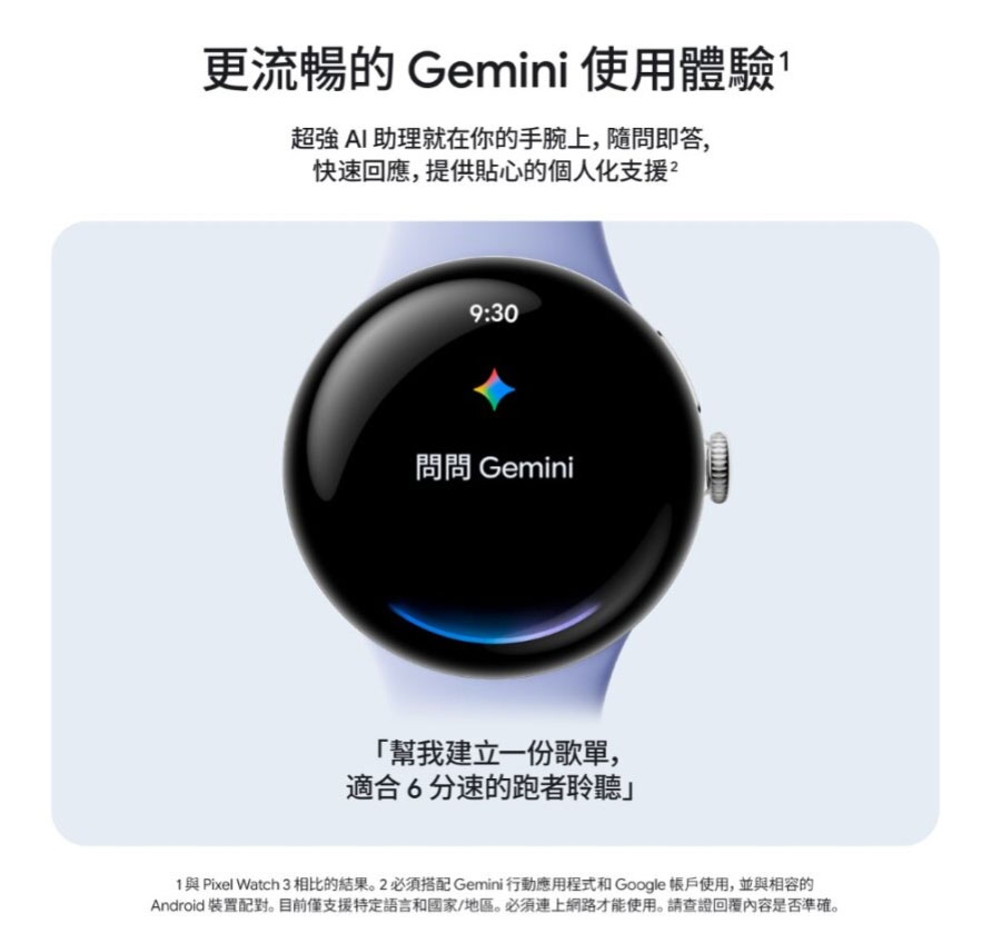 | 內容物 | Pixel Watch 4/運動錶帶 (S 號和 L 號)/快充底座/快速入門指南 |