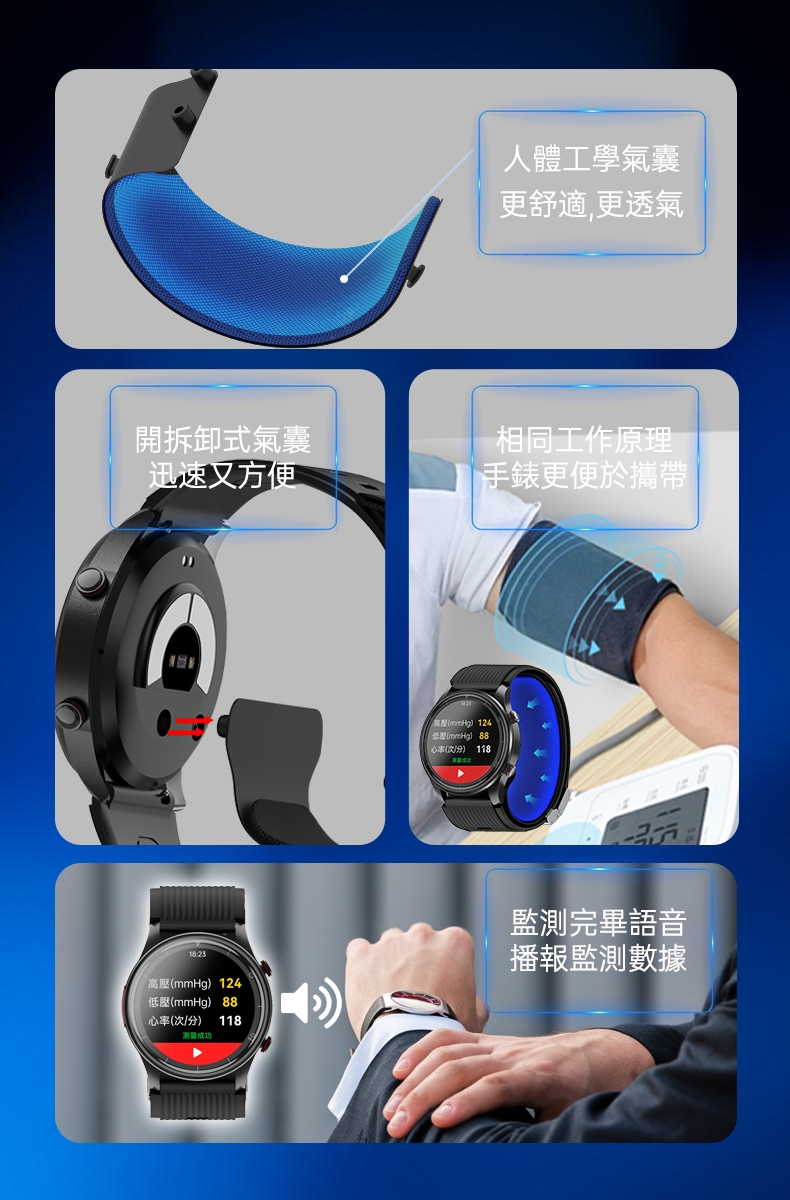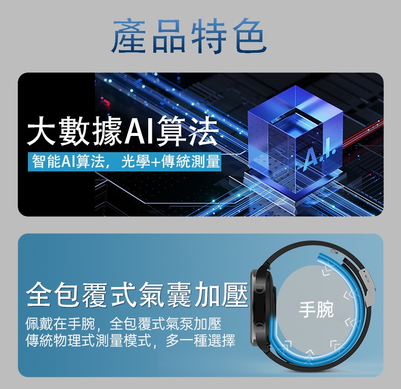 | 內容物 | 手錶、錶帶、氣囊、磁吸式USB充電線、說明書、保固卡 |