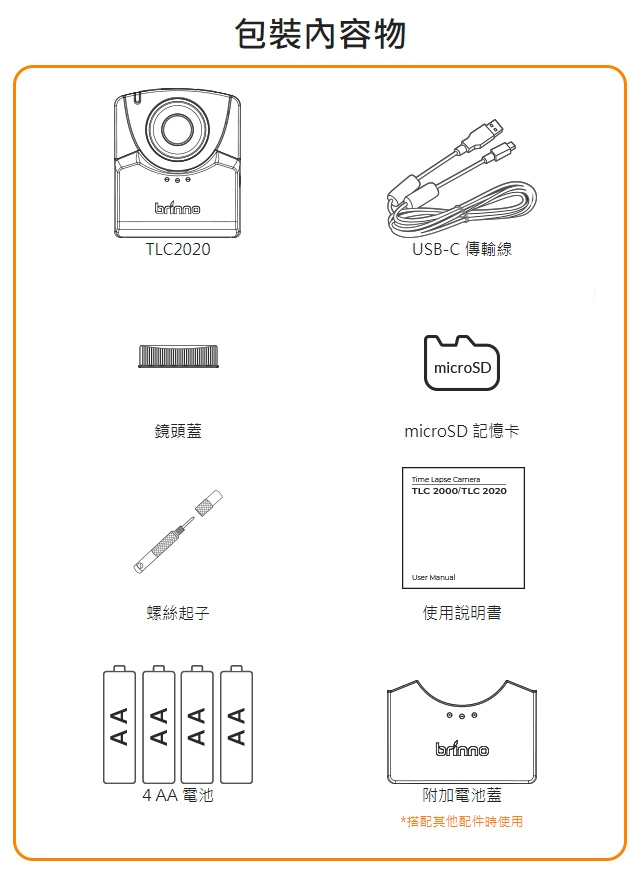 | 1.,從授權銷售通路/分銷商/經銷商以全新狀態購買的保固期:帶有Brinno官方序列號的產品與配件1年 |
