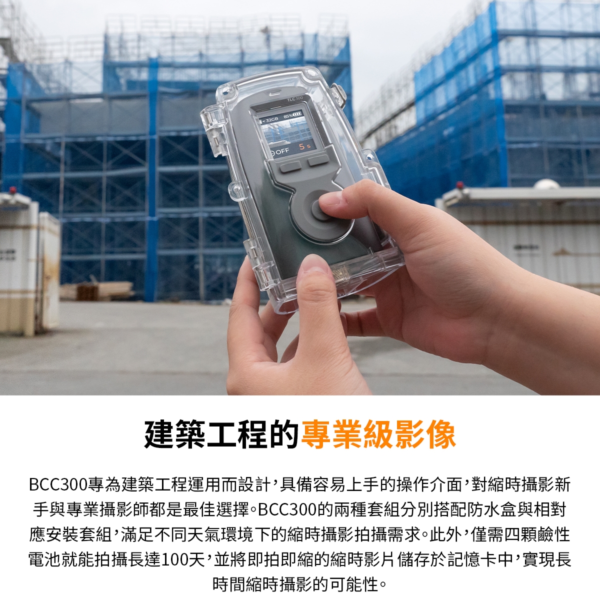 Brinno BCC300C 縮時攝影機,支援 Full HD 1080p 高畫質錄影,內建 SD 儲存,使用 AA 電池,可連續錄影 100 天(每 5 分鐘一張)。螢幕為 TFT LCD,尺寸 1.9 吋以下,輕巧便攜,提供 12 個月保固及 BSMI 許可字號 D43693。