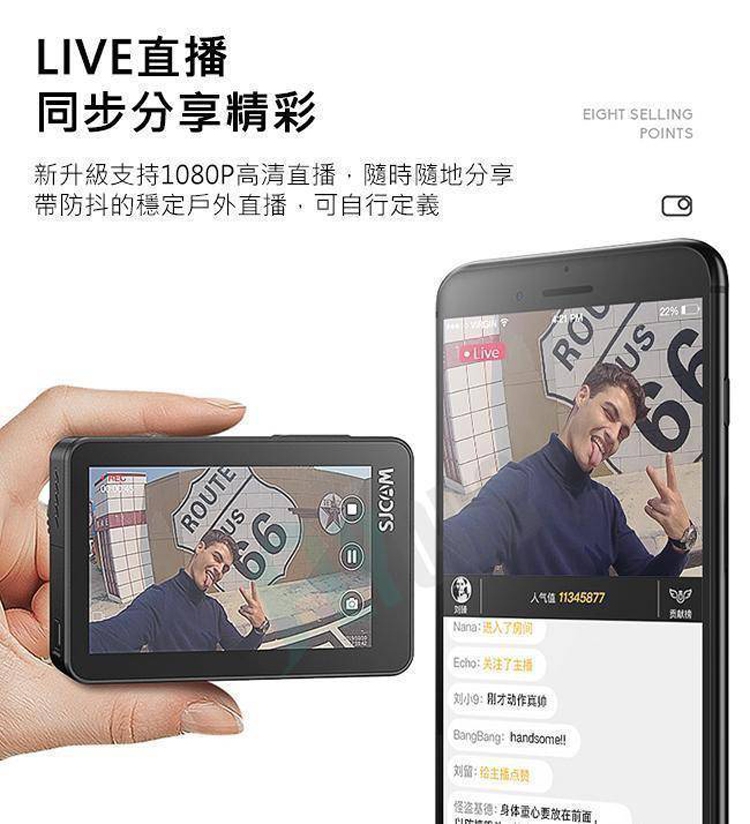 FLYone SJCAM SJ8 4K無光學變焦防水攝影機 可觸控螢幕 WiFi 鋰電池 microSD 支援MP4格式4,099