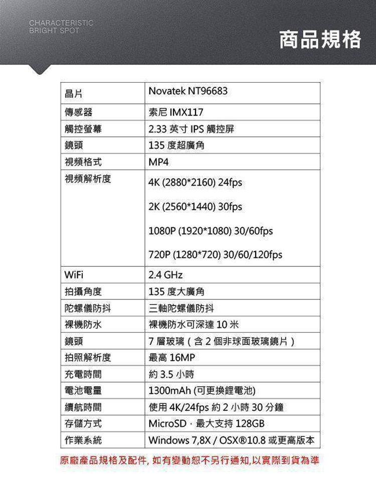 | 備註 | ※原廠產品規格及配件如有變動,恕不另行通知以實際到貨為準,本公司保有更改之權利。 |