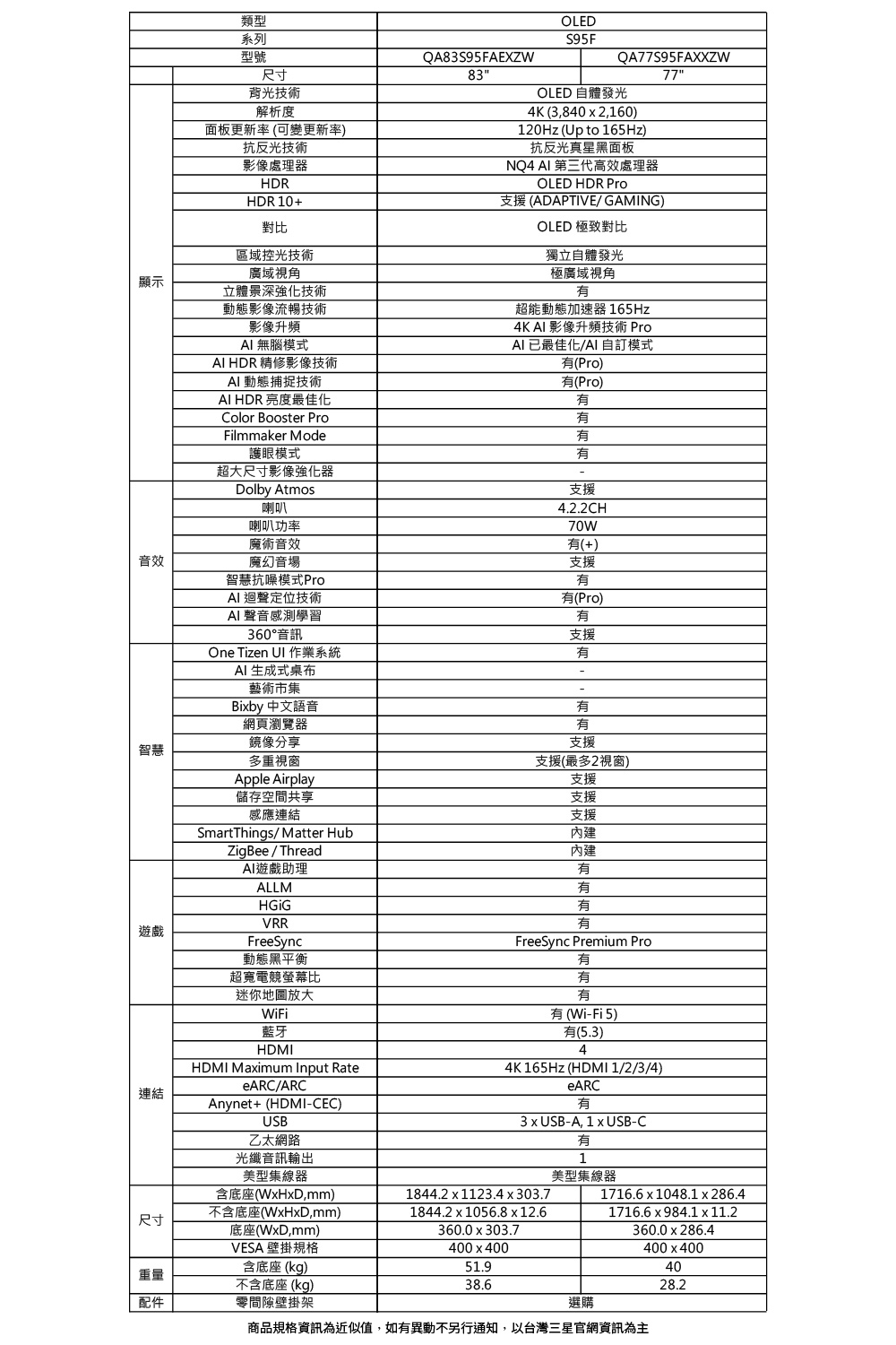 | 型號 | QA83S95FAEXZW、QA83S95F、83S95F |