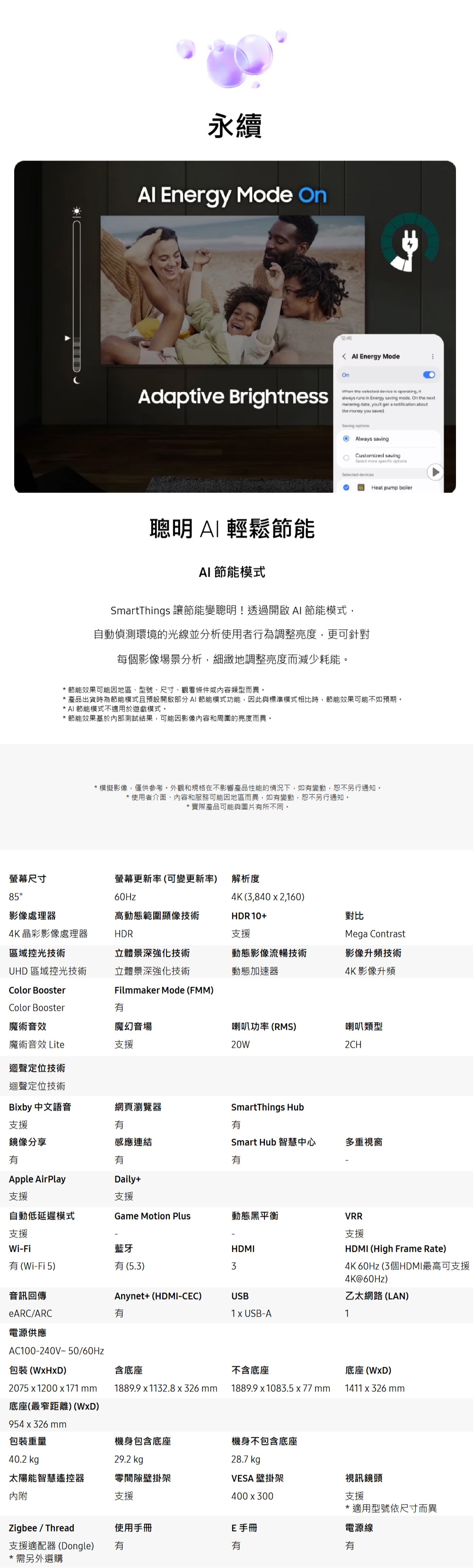 | 面板尺寸(英吋) | 85吋 |