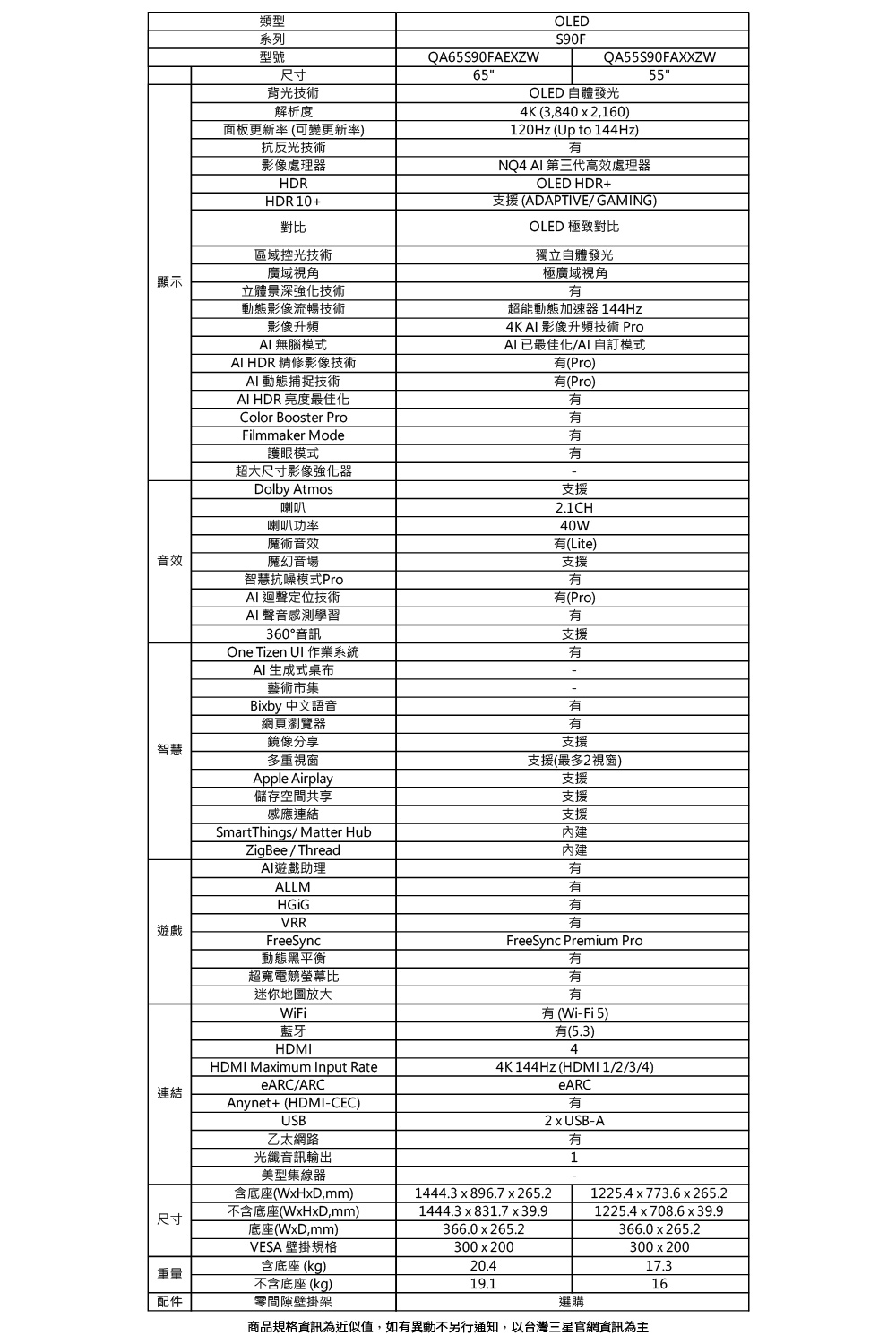 | 型號 | QA65S90FAEXZW、QA65S90F、65S90F |