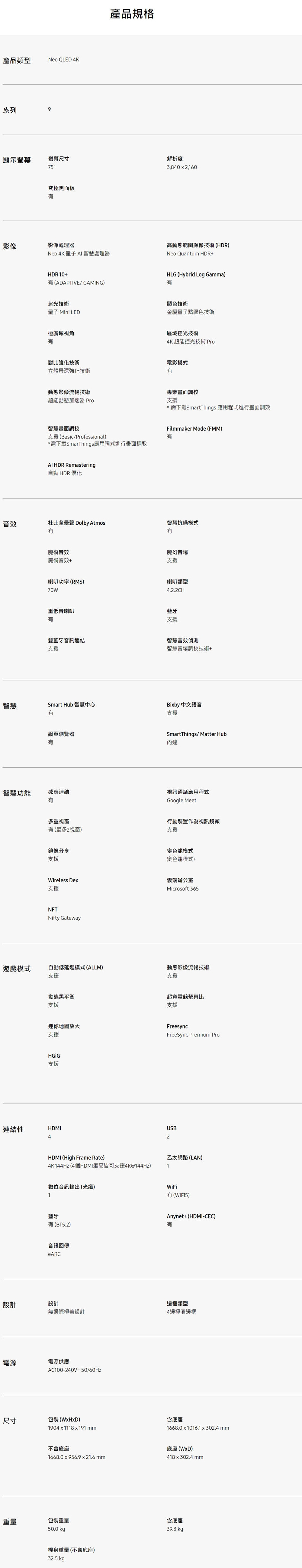 | 尺寸(寬x高x深) | 含底座1668x1016.1x302.4mm;不含底座1668x956.9x21.6mm |