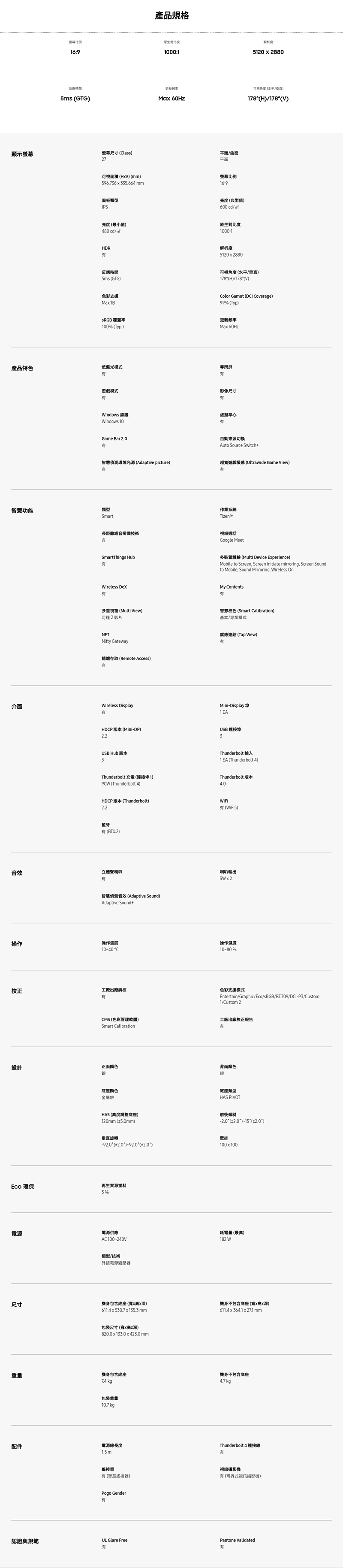 | 面板解析度 | 5K (5120x2880) |