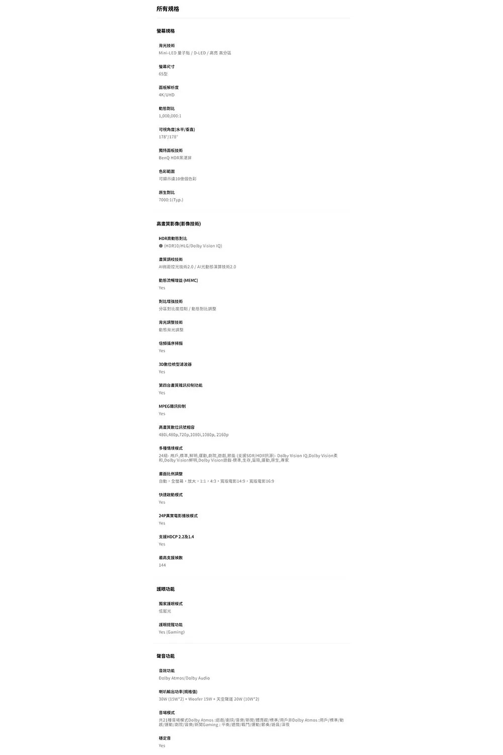 | 喇叭輸出功率 | 30W (15W*2) + Woofer 15W + 天空聲道 20W (10W*2) |