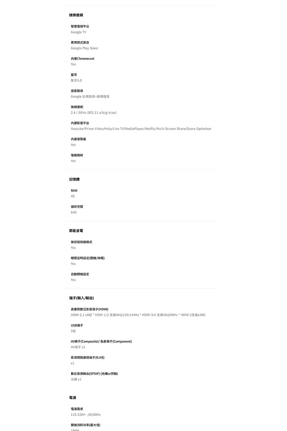 | 環繞音場 | 杜比數位音效, S-FORCE 立體環繞音場 |