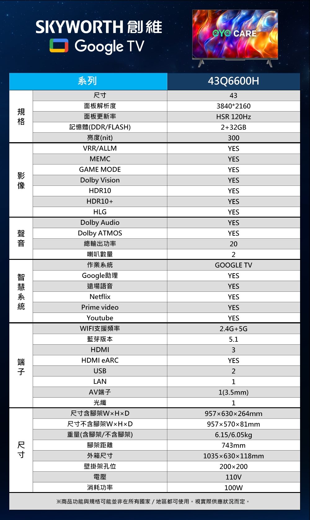 | 品牌 | SKYWORTH 創維 |