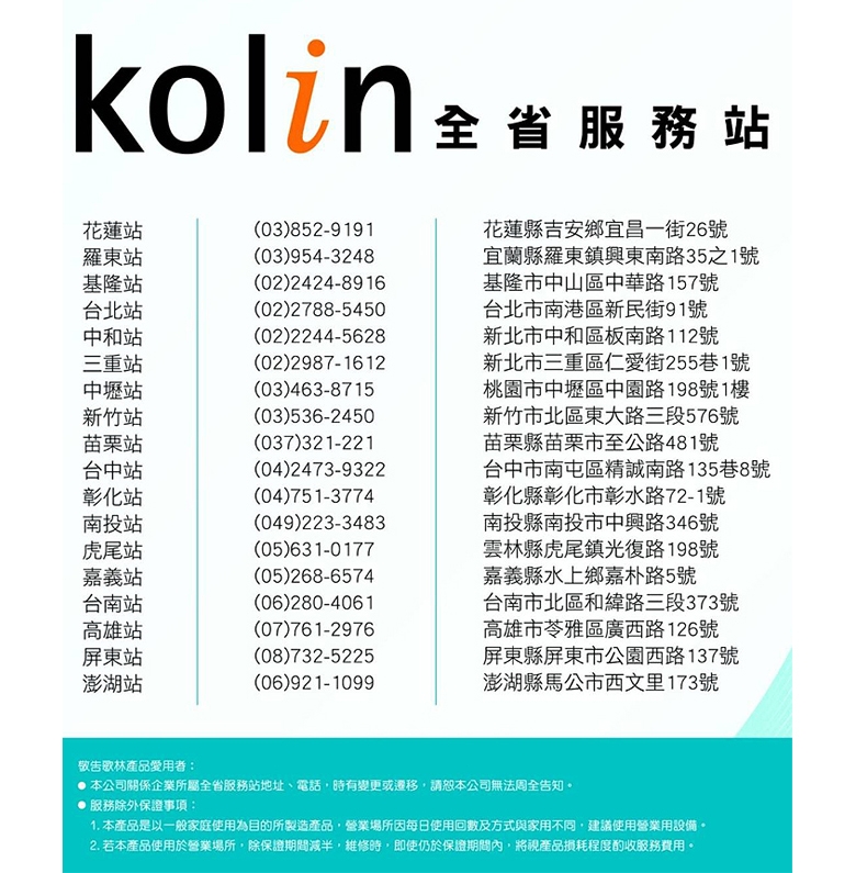 | 品牌 | Kolin 歌林 |