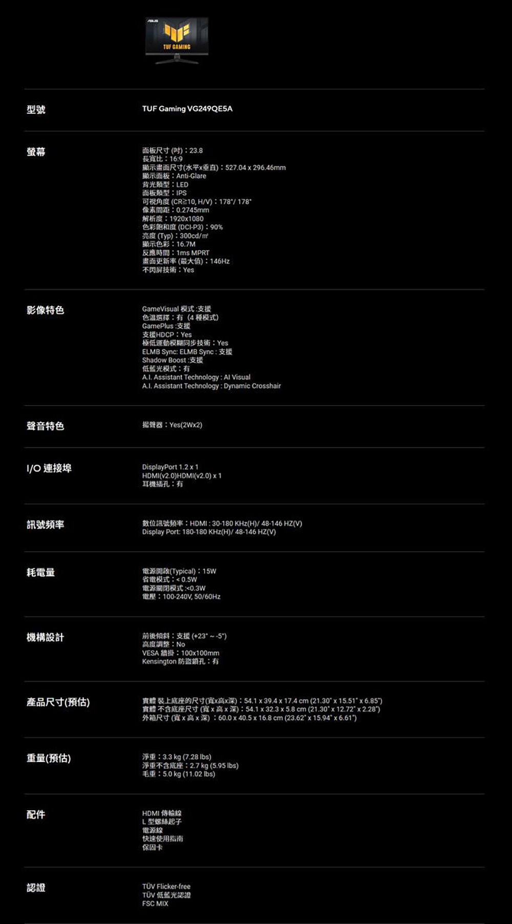 | 特殊功能 | 電競 |