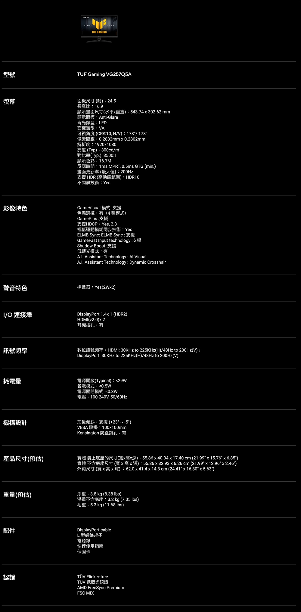 | 型號 | VG257Q5A |