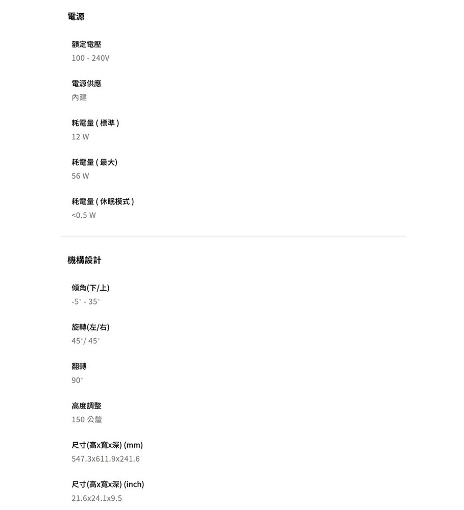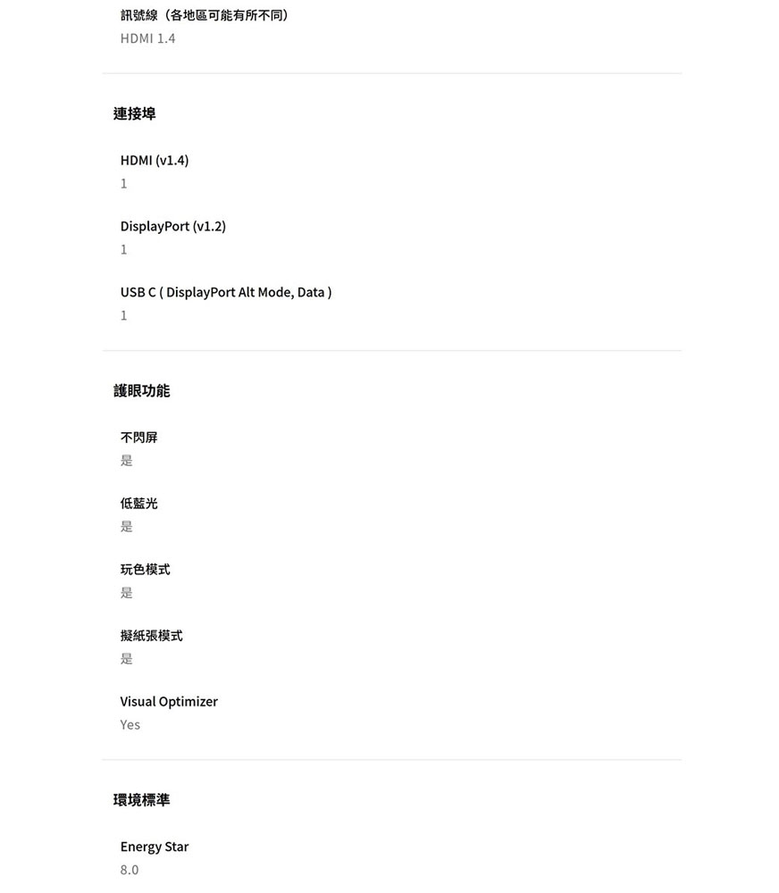 | 訊號輸入介面 | HDMI, DisplayPort(DP) |