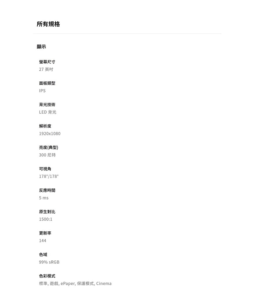 | 螢幕尺寸(吋) | 27吋 |