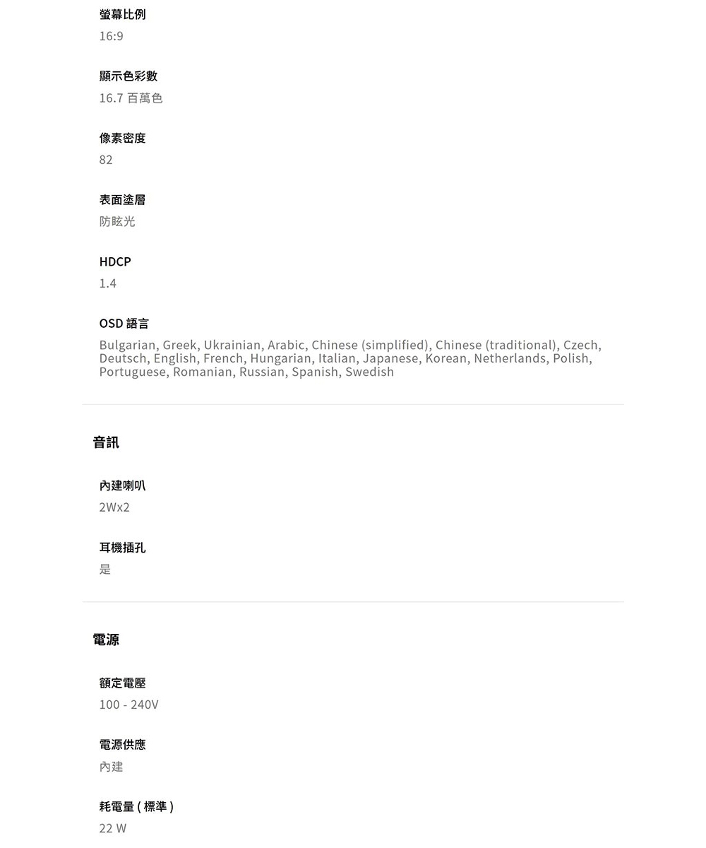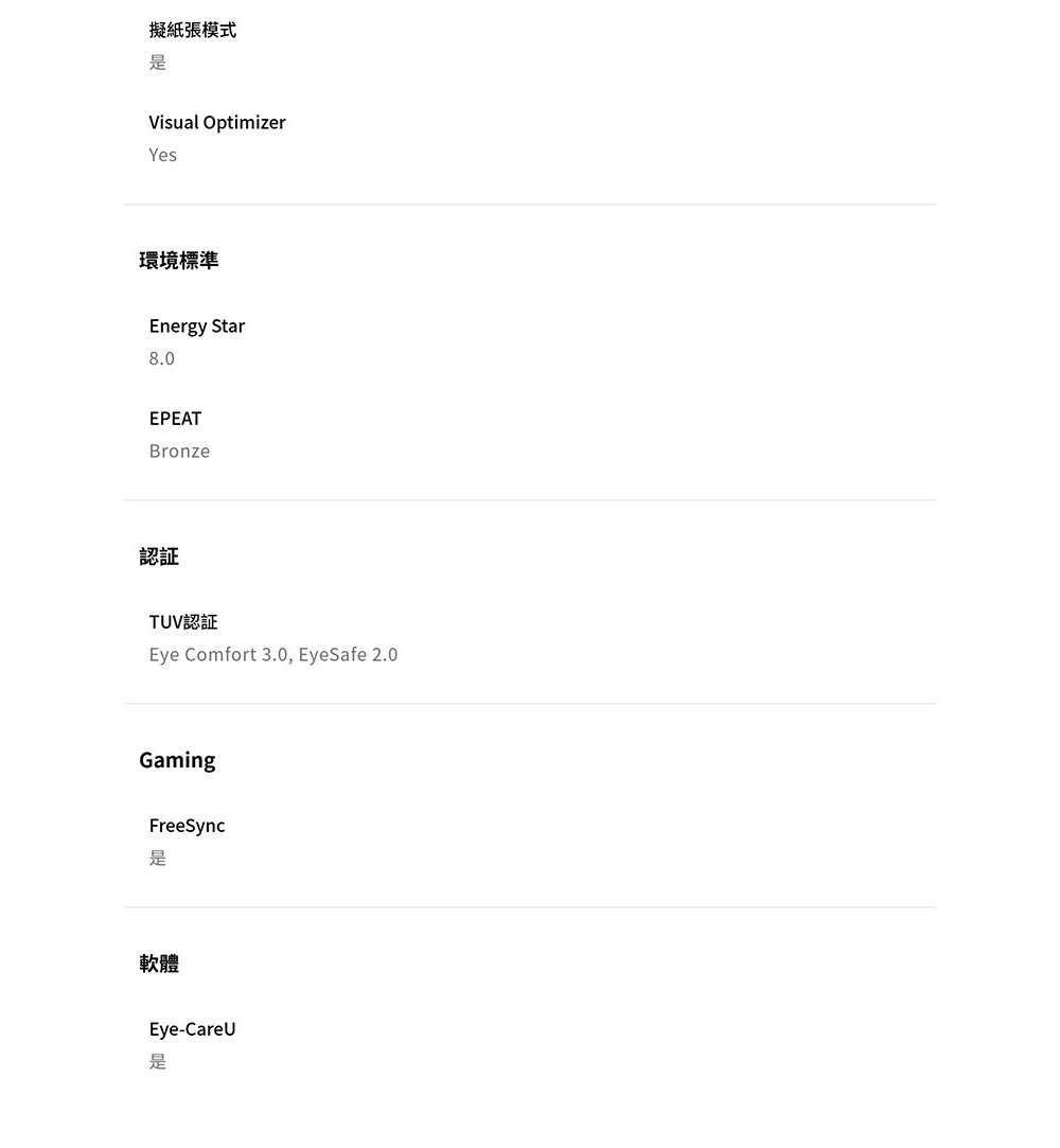 | 特殊功能 | 護眼, 抗藍光, 零閃屏 |
