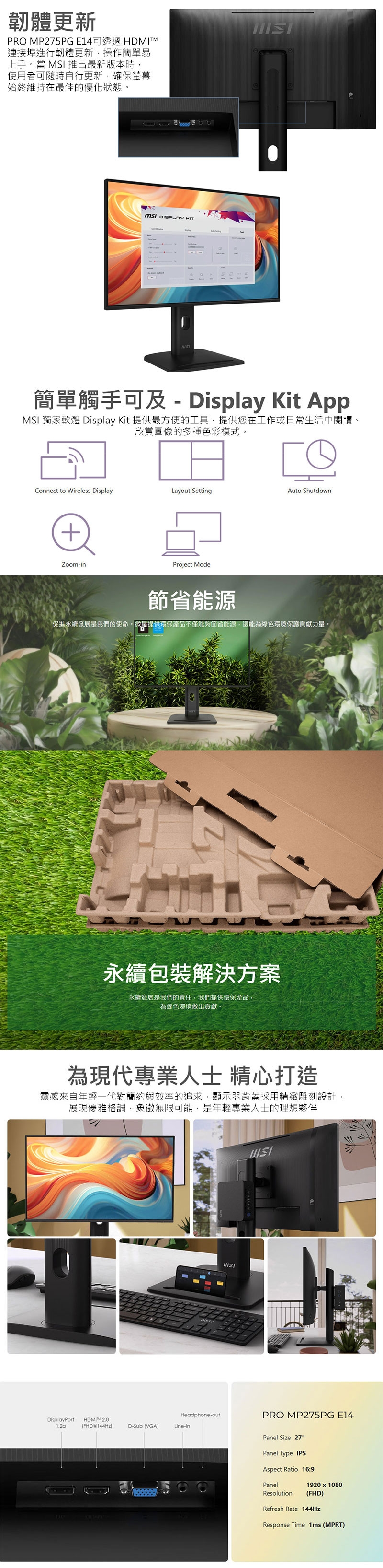 | 訊號輸入介面 | D-Sub(VGA), DisplayPort(DP), HDMI |
