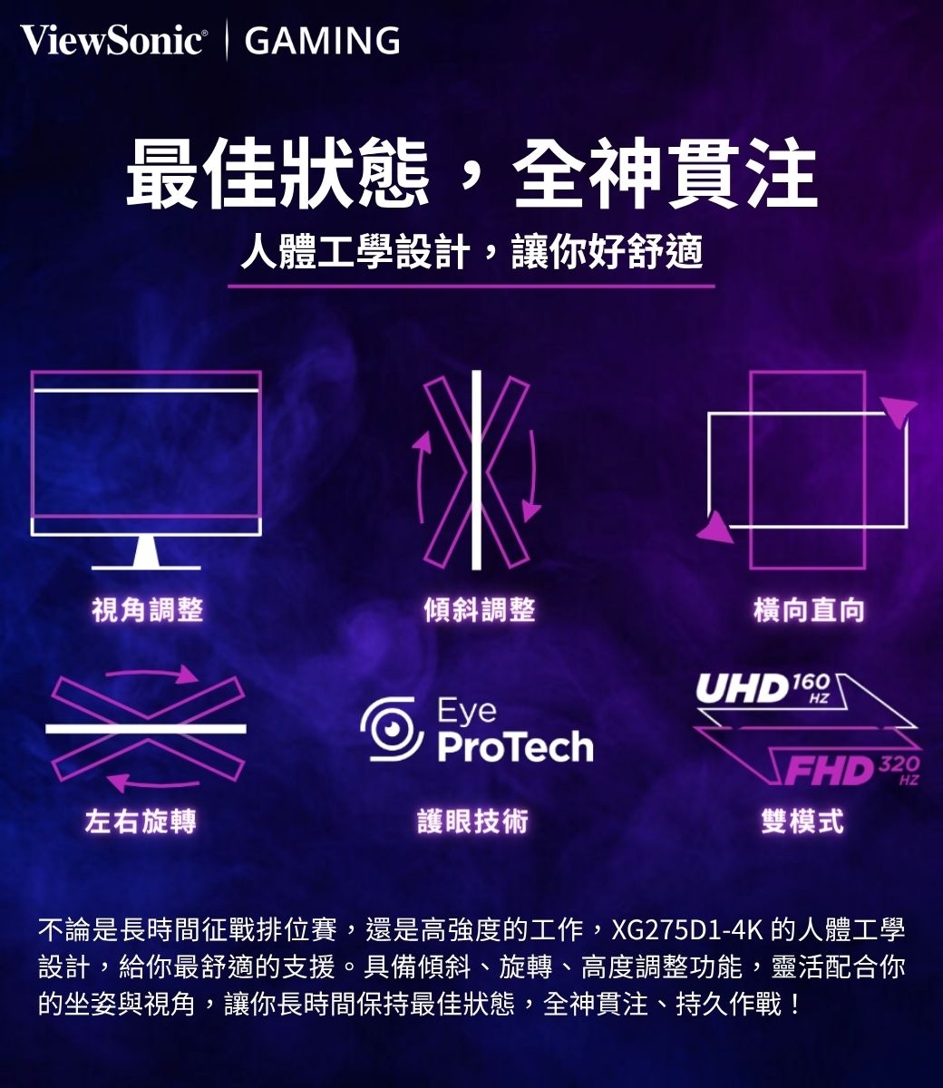 | 產品定位 | 學生入門款, 看片/追劇首選, OA辦公用CP值高, 健康護眼款, 電競Gamer必買 |