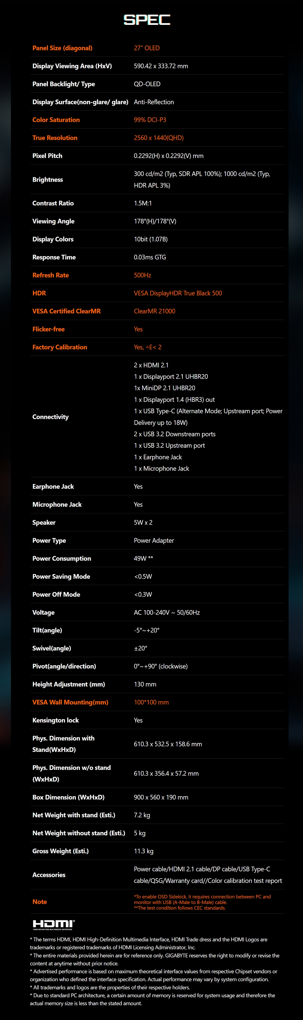 | 型號 | AORUS FO27Q5P |